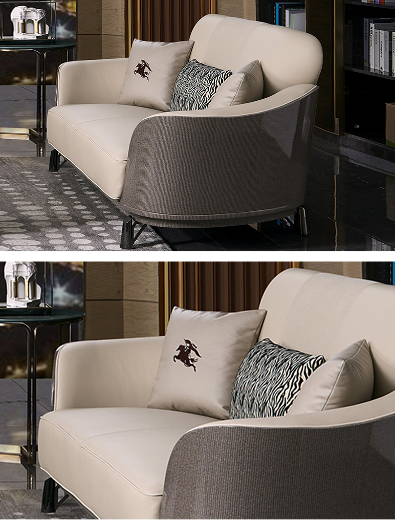 拉斐尔 轻奢 纳帕真皮+仿真皮+进口落叶松+多层实木板+高回弹海绵+电镀不锈钢五金 1+2+3 沙发¥25392