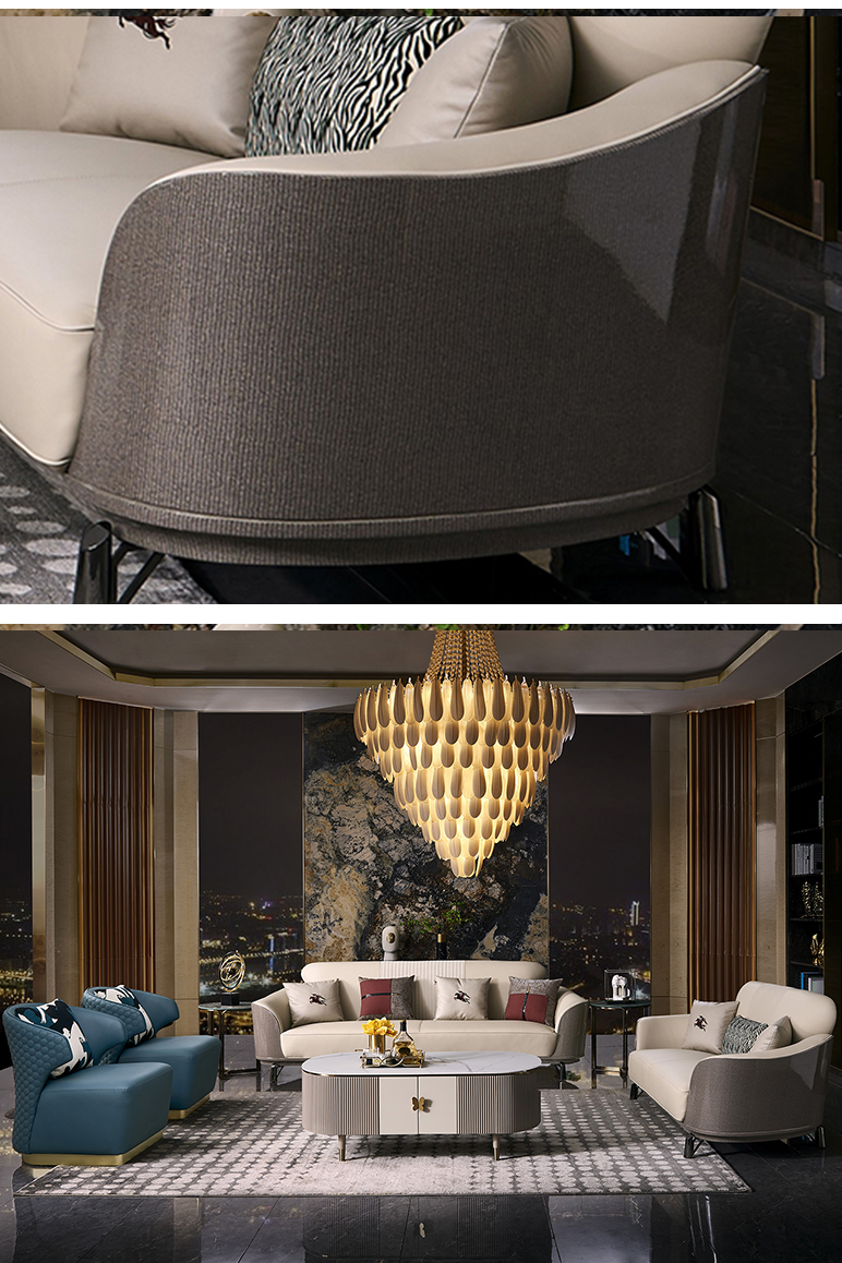 拉斐尔 轻奢 纳帕皮+仿真皮+(单位绒布)+进口落叶松+多层实木板+高回弹海绵+电镀不锈钢五金 1+2+3 沙发¥16205