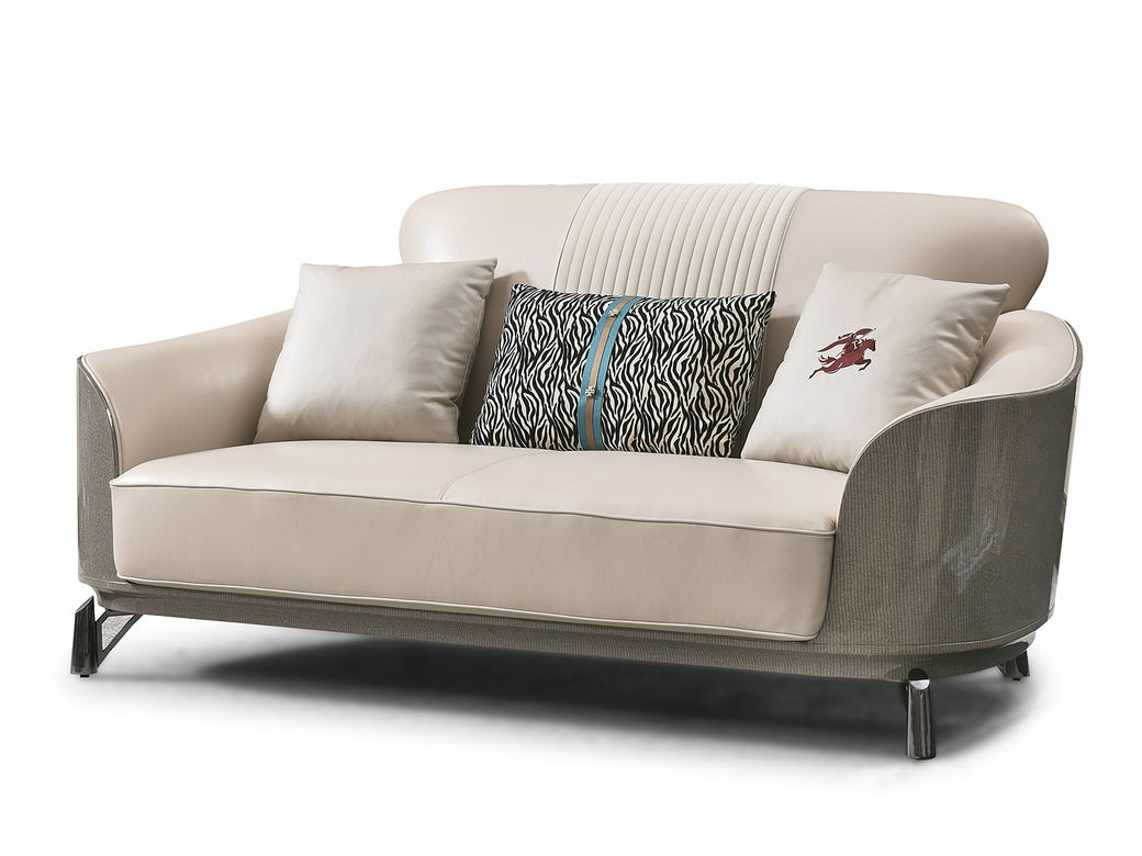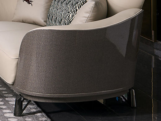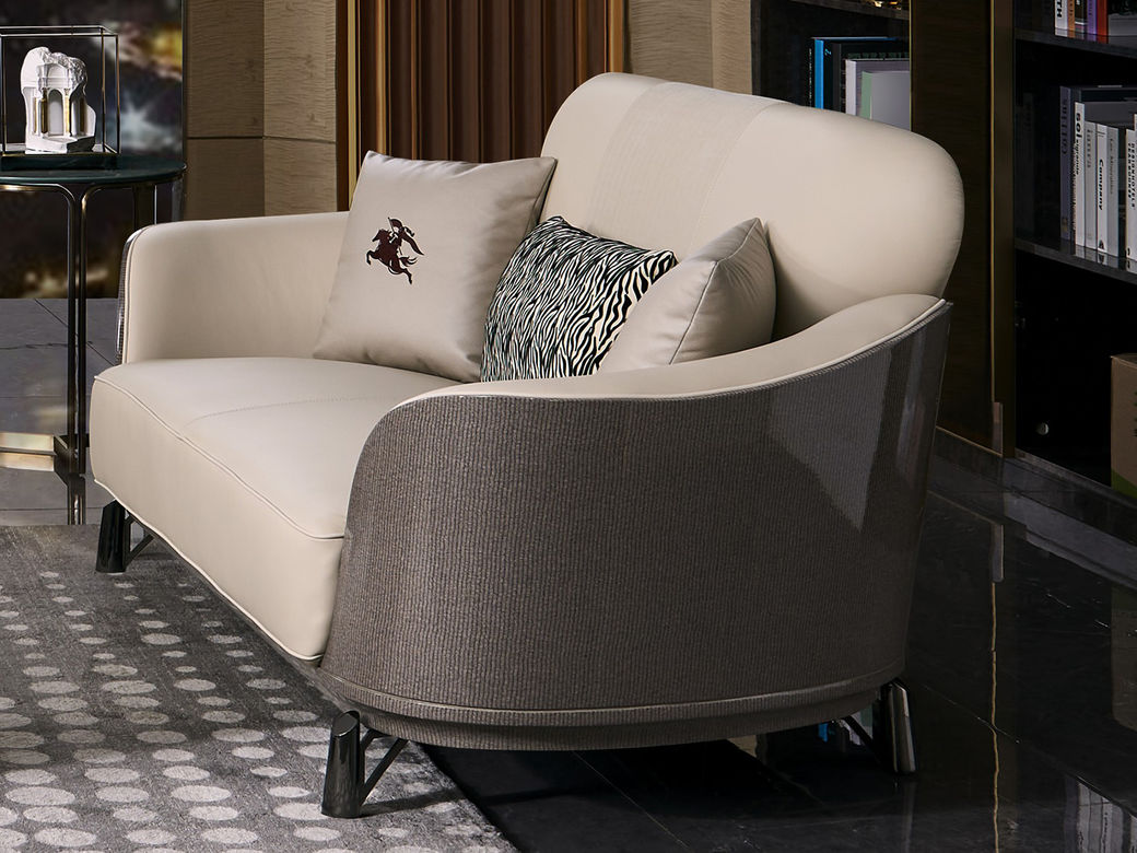 拉斐尔 轻奢 木纹木皮+多层实木板弯板+全实木内架+电镀五金+接触面头层牛皮真皮+仿真皮 双位 1.95米沙发