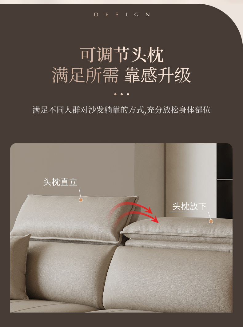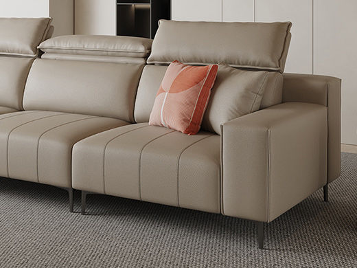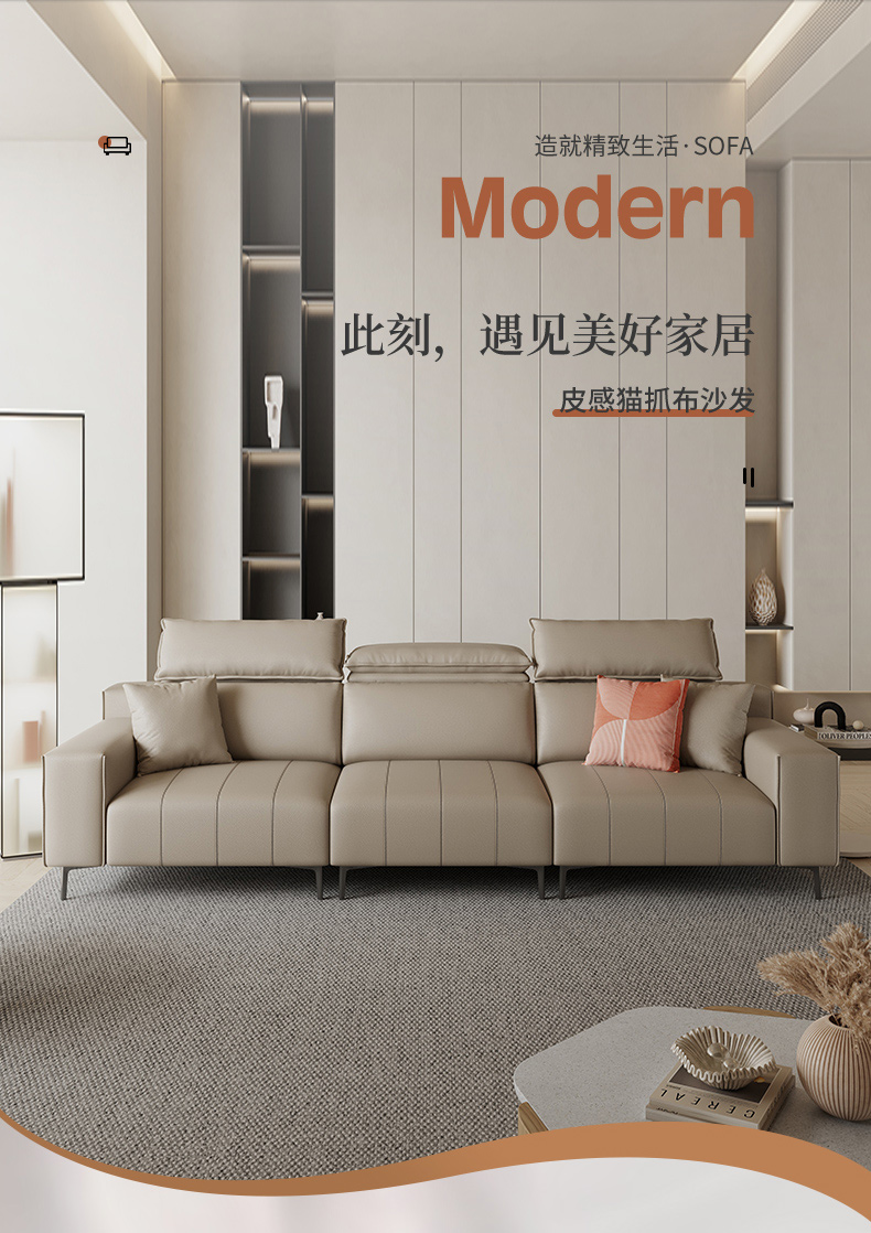 非凡工艺 现代简约 猫爪皮+框架落叶松木+高档黑砂五金脚 头枕可调节 3.08米 五人位(左单+单+右单) 沙发