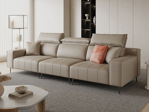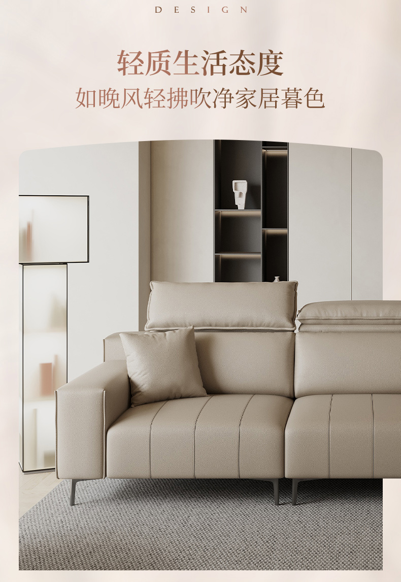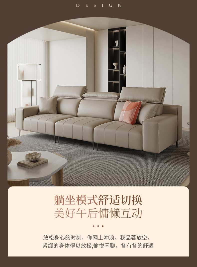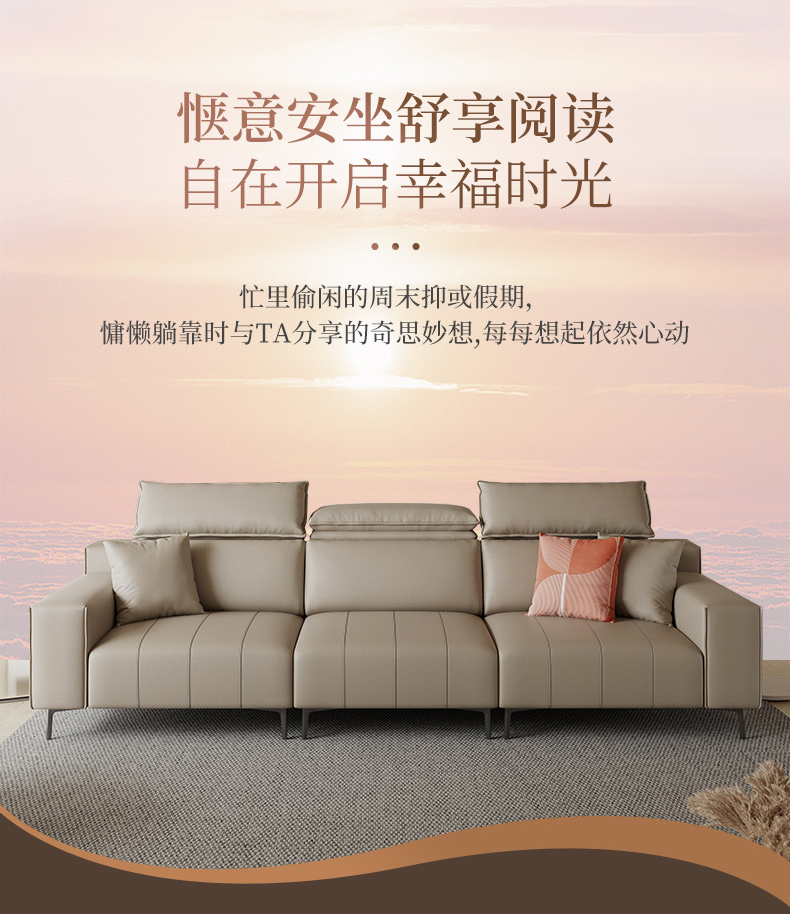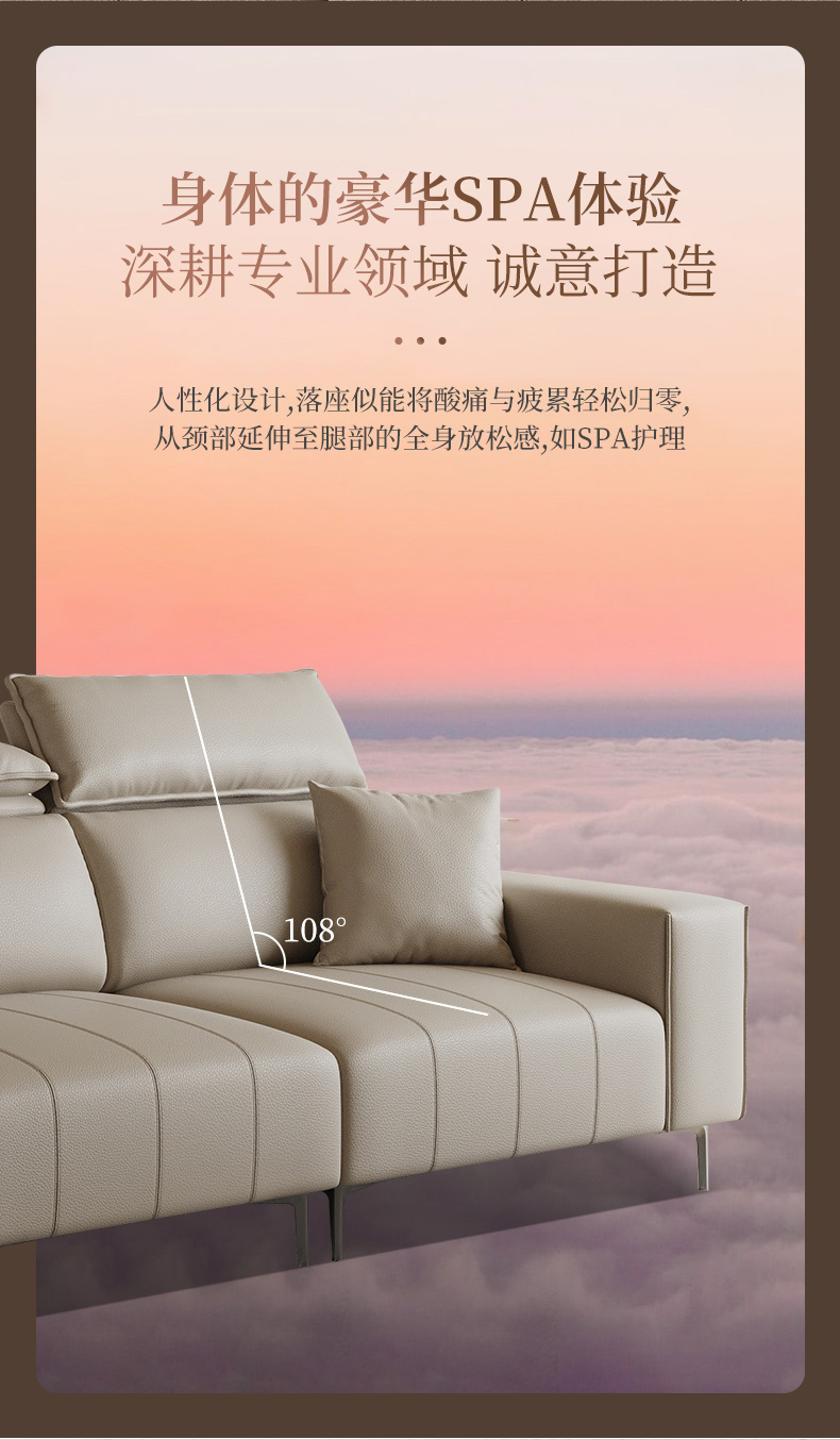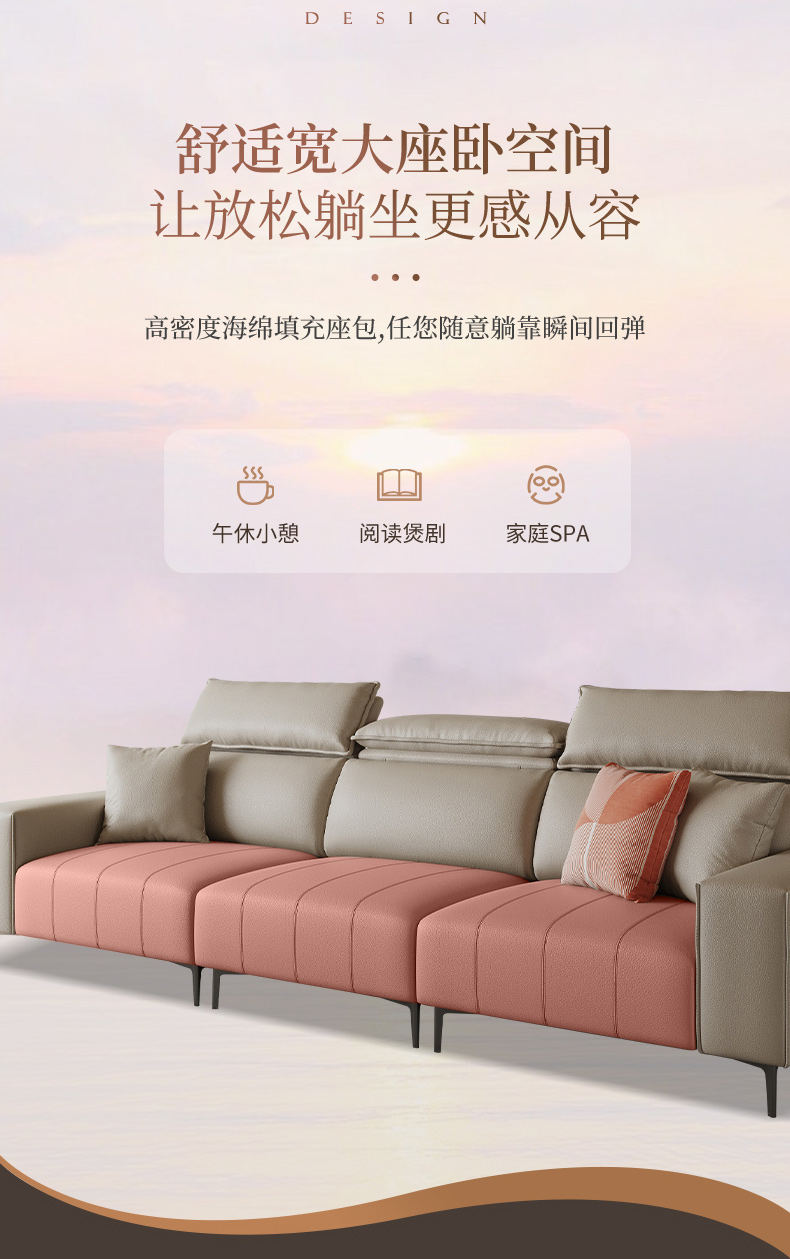 非凡工艺 现代简约 接触面头层黄牛皮+仿真皮+E1级多层实木板+进口落叶松 五人位 3.2米沙发¥6058