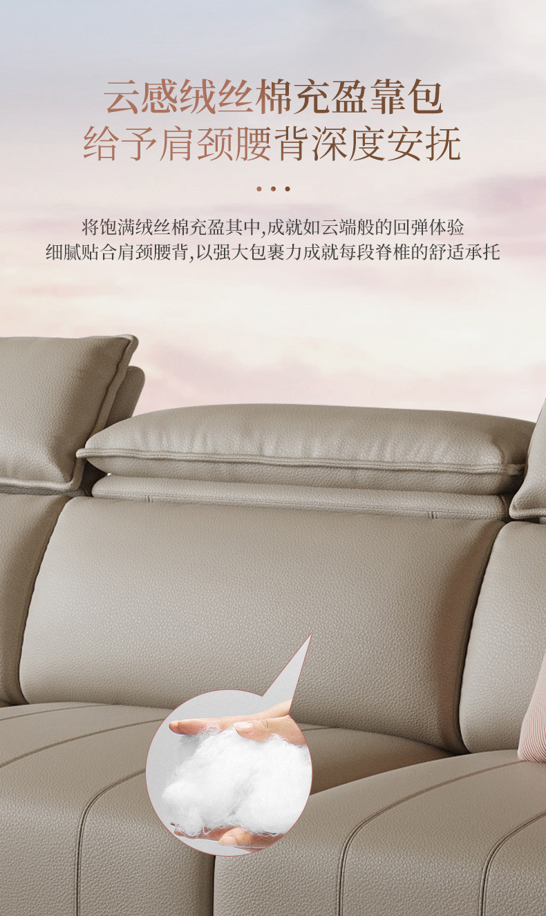 非凡工艺 现代简约 迪兰沙发 网红 接触面头层牛皮+框架落叶松木+多层实木夹板+碳素钢脚 双异形贵妃组合4.42米 沙发