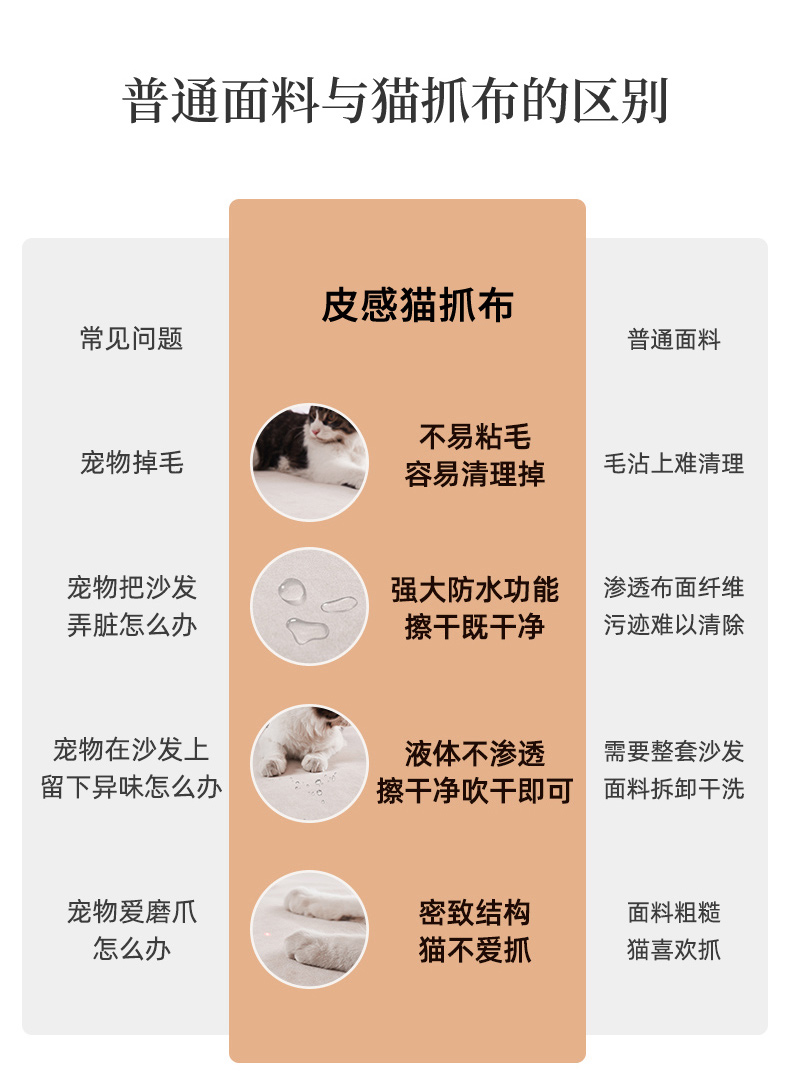 非凡工艺 现代简约 猫抓布+高密度海绵+羽绒+松木+桉木+弹簧+橡筋+网布+实木脚 1+2+4+脚踏 组合布艺沙发