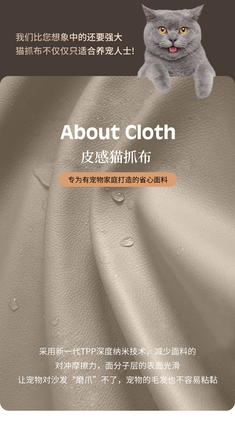 非凡工艺 现代简约 云朵 网红 绒感猫爪布+框架落叶松木+实木脚 2.2米 三人位一体 沙发