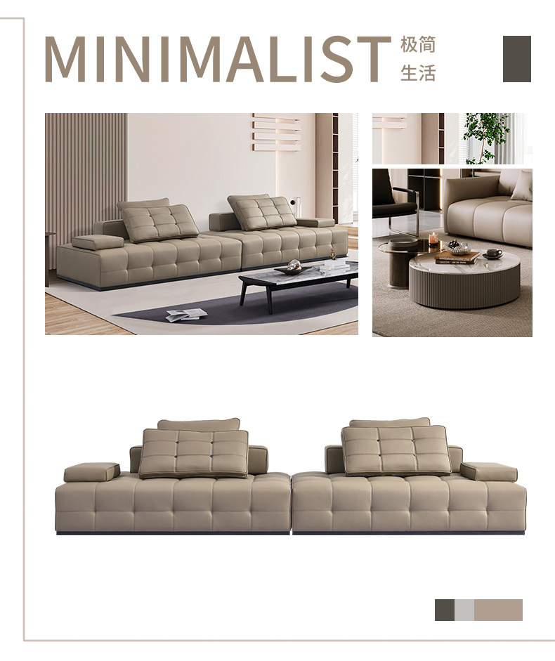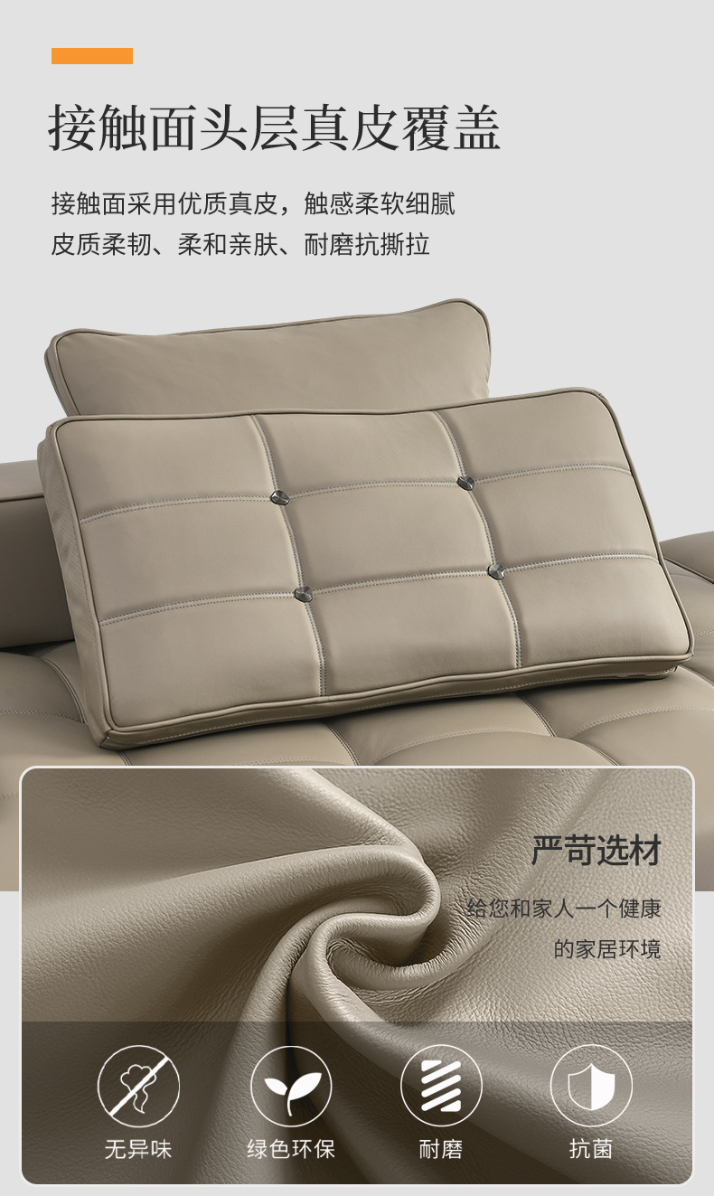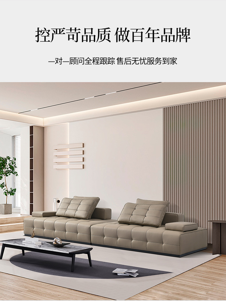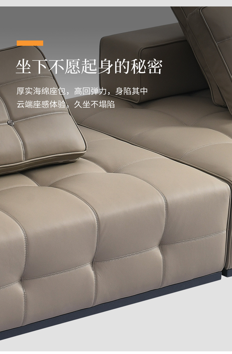 小红书系列 极简 接触面头皮黄牛皮+进口俄罗斯落叶松框架,高回弹高密度海绵 3.2米像素沙发