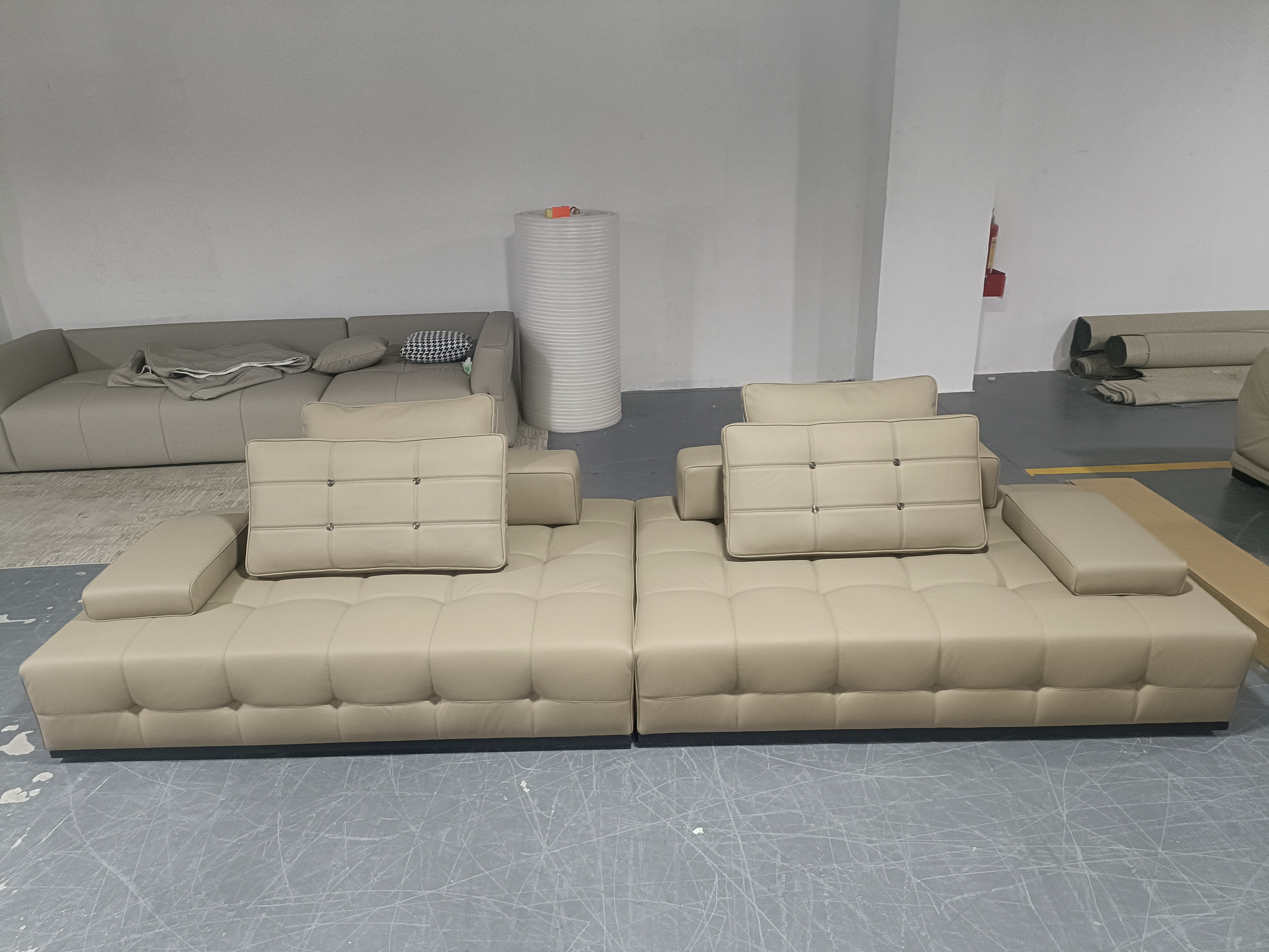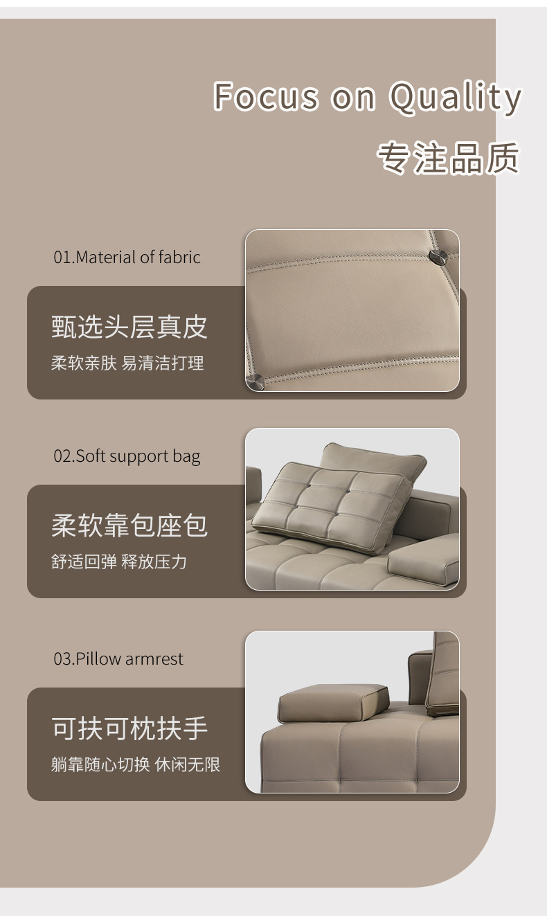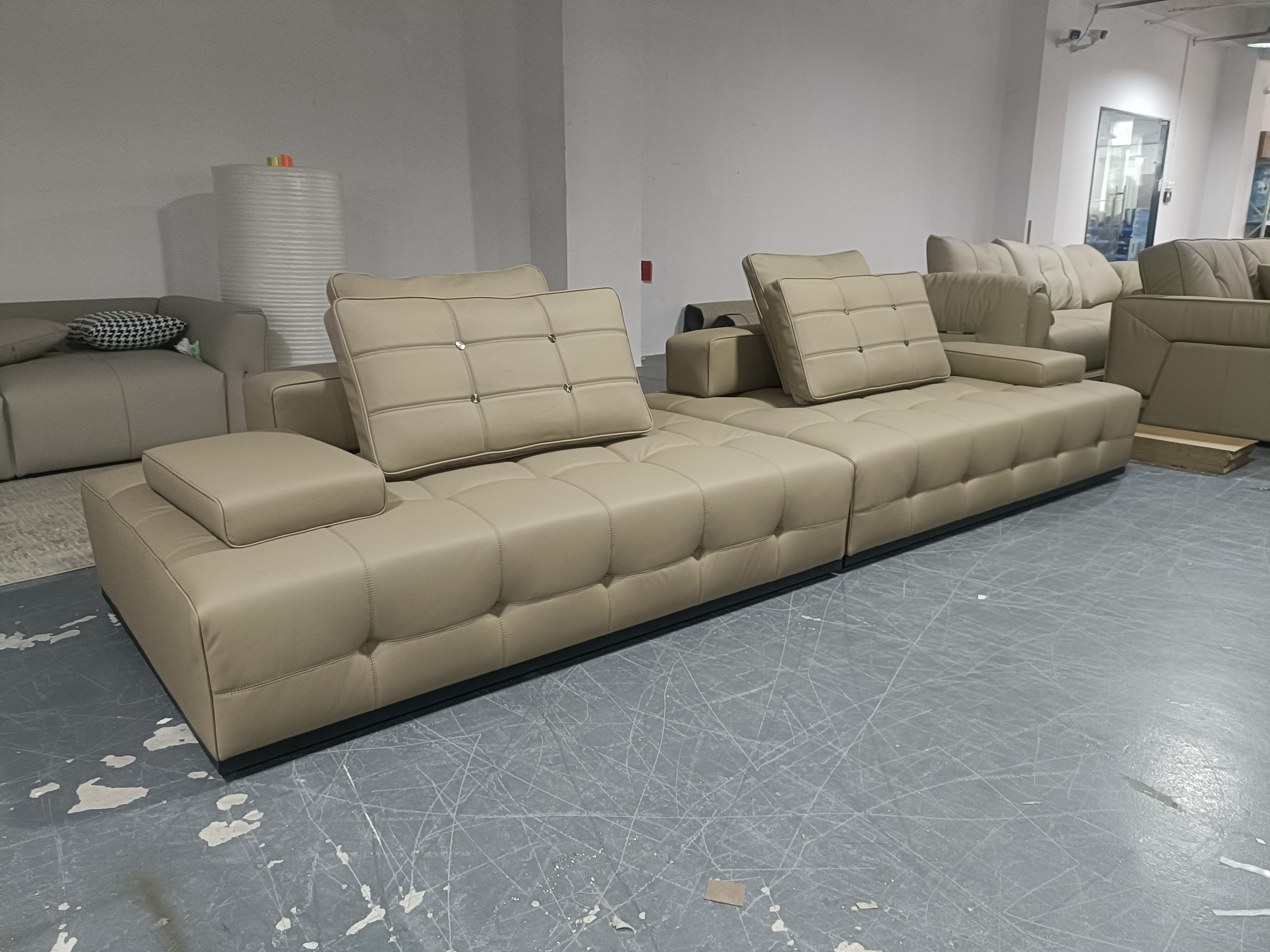 小红书系列 极简 接触面头皮黄牛皮+进口俄罗斯落叶松框架,高回弹高密度海绵 3.2米像素沙发