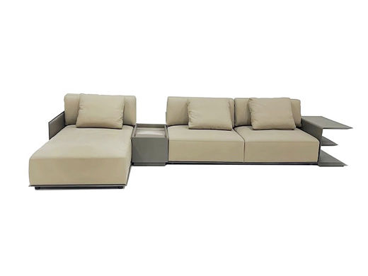 非凡工艺 现代简约 迪兰沙发 网红 接触面头层牛皮+框架落叶松木+多层实木夹板+碳素钢脚 双异形贵妃组合4.42米 沙发¥6015