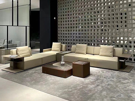非凡工艺 现代简约 水母沙发 网红 接触面头层牛皮+框架落叶松木+多层实木夹板 组合E:4.39*2.64米 边柜+单+单+左转角位+单+单+边相 沙发