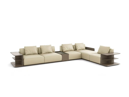 非凡工艺 现代简约 水母沙发 网红 接触面头层牛皮+框架落叶松木+多层实木夹板 组合E:4.39*2.64米 边柜+单+单+左转角位+单+单+边相 沙发