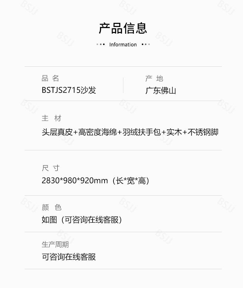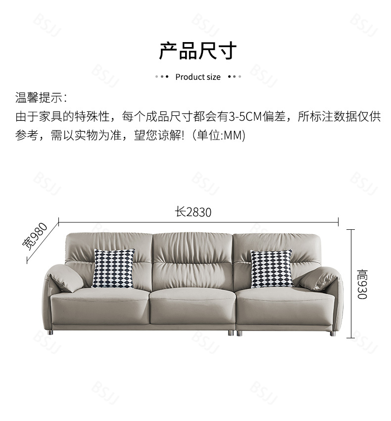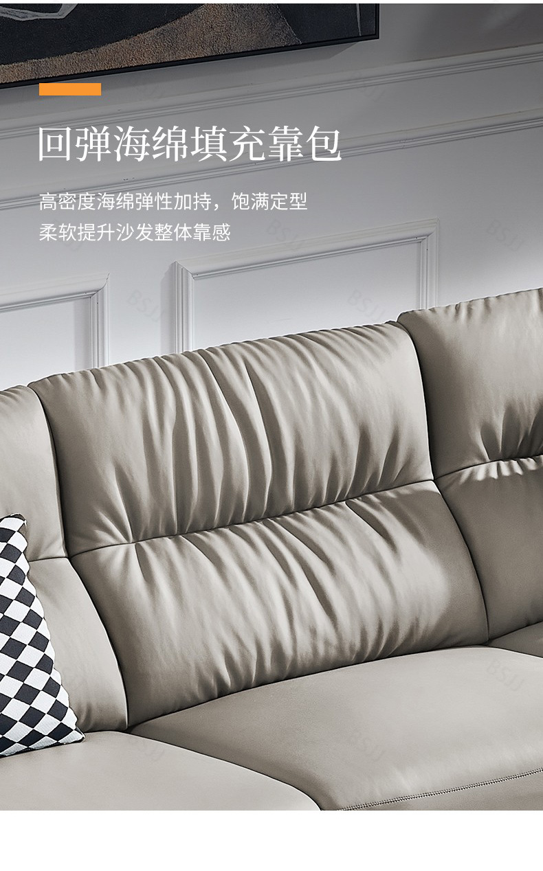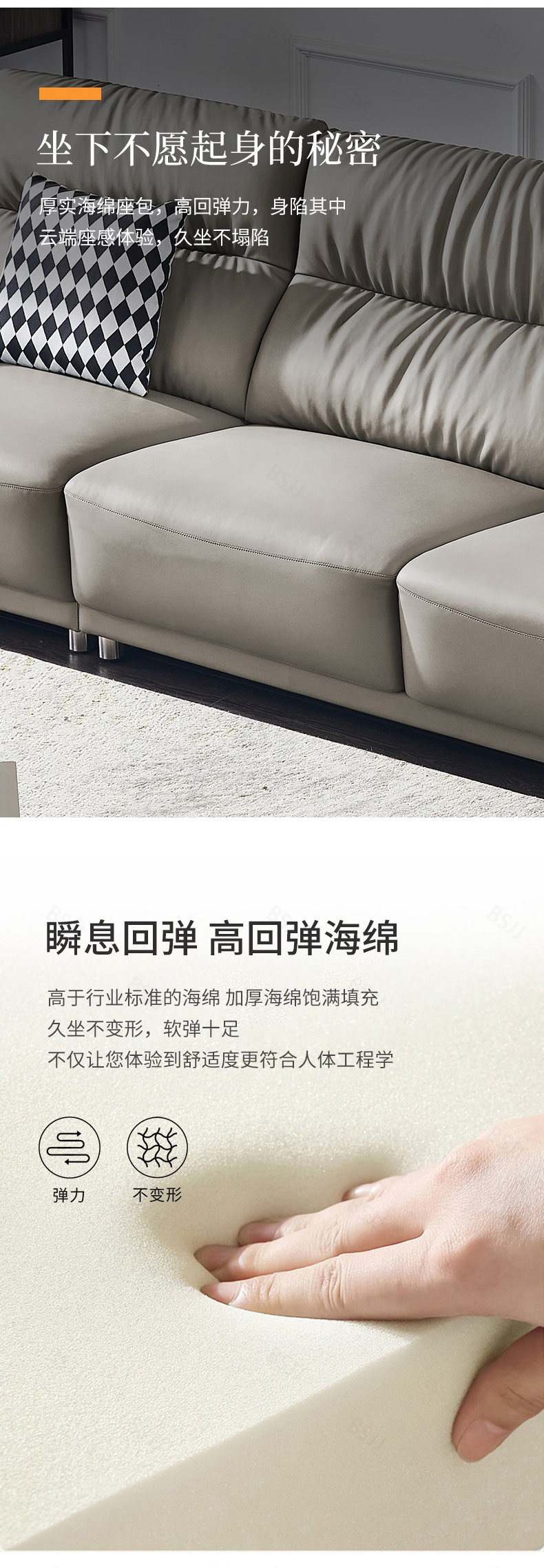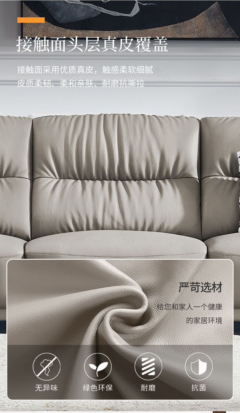 非凡工艺 现代简约 接触面头层真皮+仿真皮+落叶松木+多层实木板+高回弹海绵+蛇形弹簧 四人位 2.8米沙发非凡工艺 现代简约 接触面头层牛皮+优质回弹海绵+框架落叶松木+绒丝棉+多层实木夹板+5cm黑砂五金脚 左单+右三 2.8米 4人位 沙发