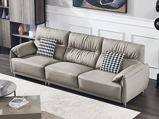非凡工艺 现代简约 接触面头层黄牛皮+仿皮 E1级夹板+松木框架 无粉海绵 靠包、扶手包有赛羽绒+公仔棉填充 样色 直排2.4米三人位 皮艺沙发¥8074