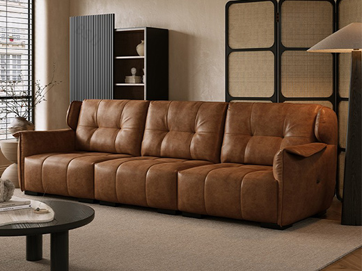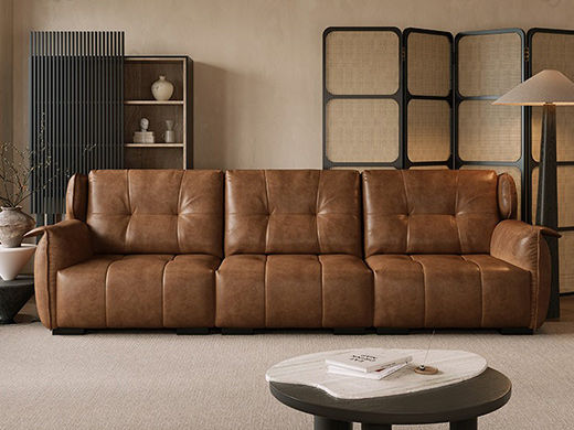 非凡工艺 现代简约 接触面头层黄牛皮+仿真皮+E1级多层实木板+进口落叶松 五人位 3.2米沙发¥5070