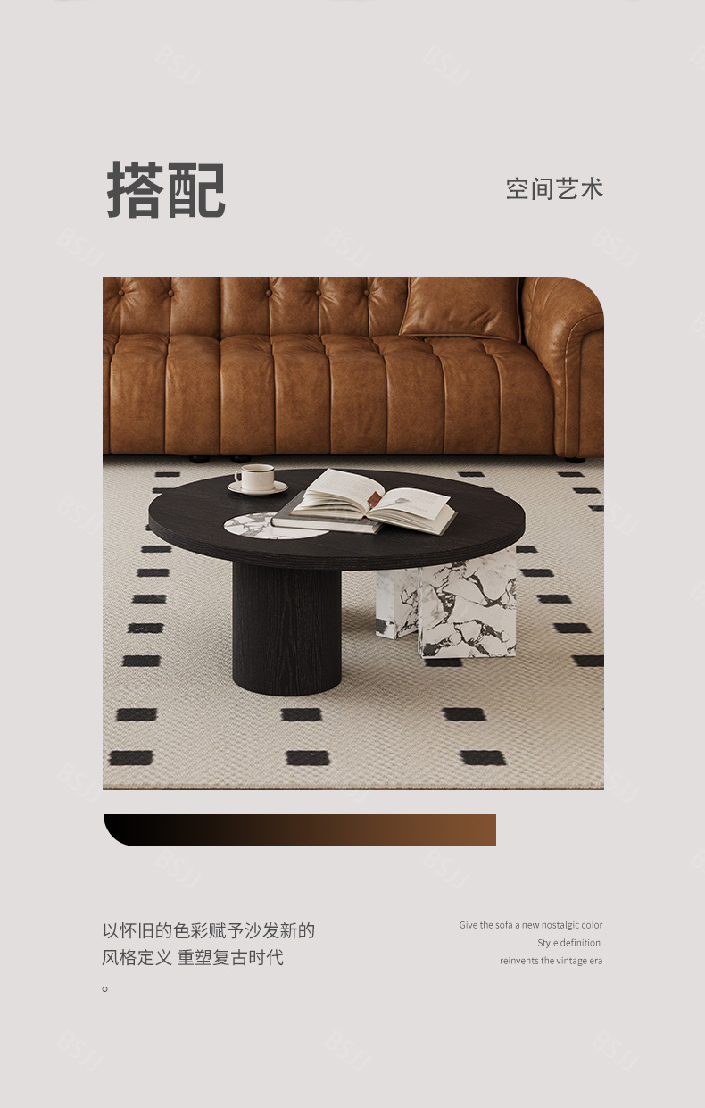中古·尚 网红 中古风 全实木内架+多层实木板+生态真皮+仿真皮+高回弹海绵+电镀五金 四人位 2.6米沙发¥9483