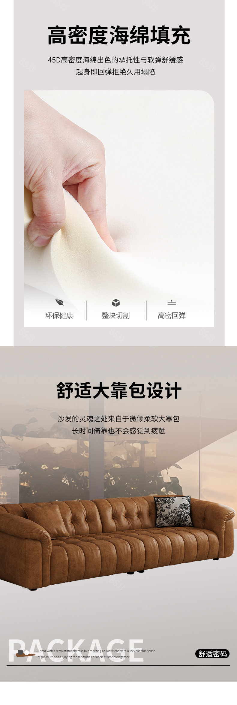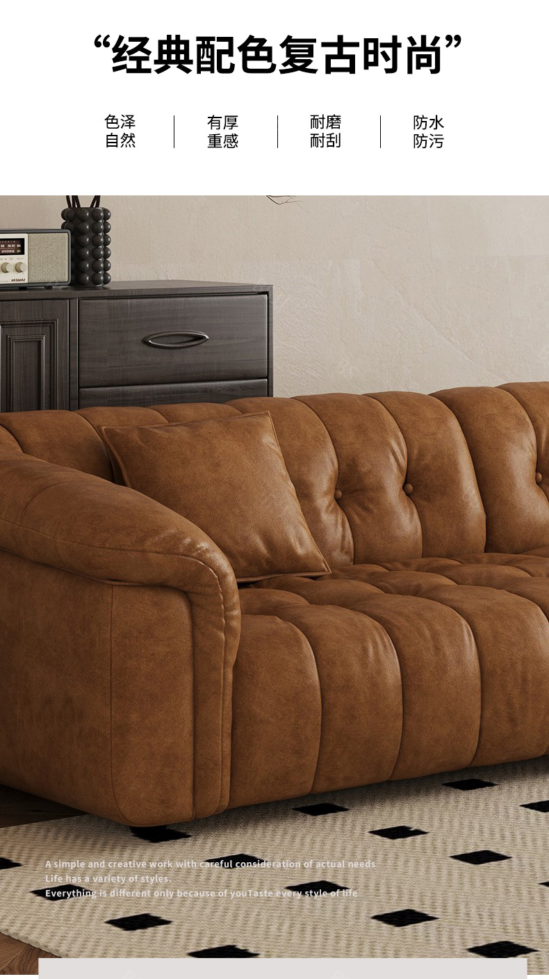 中古·尚 网红 中古风 油蜡布+松木+桉木+弹簧+橡筋+网布+羽绒公仔棉靠包+高密度海绵 2.8米 四人位分体 沙发¥20243