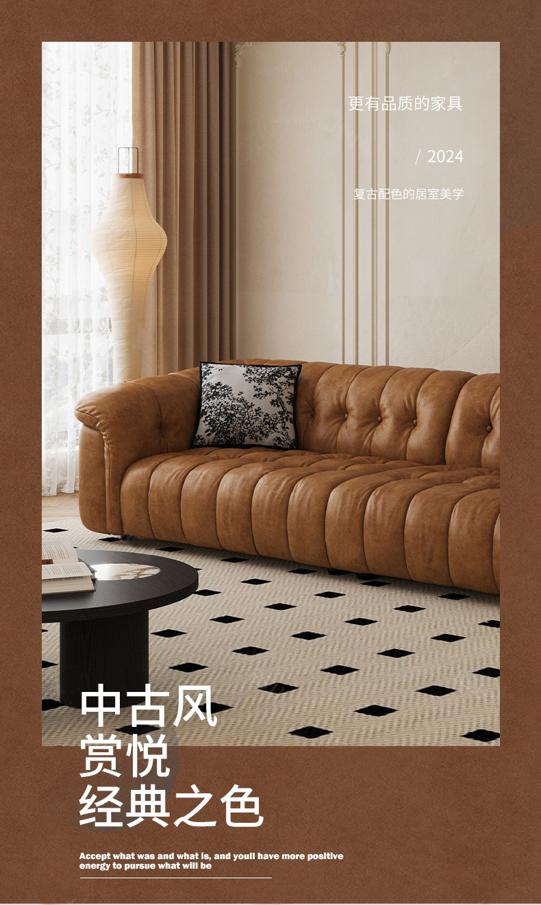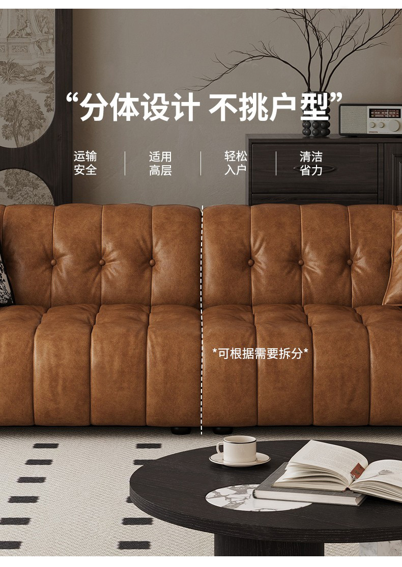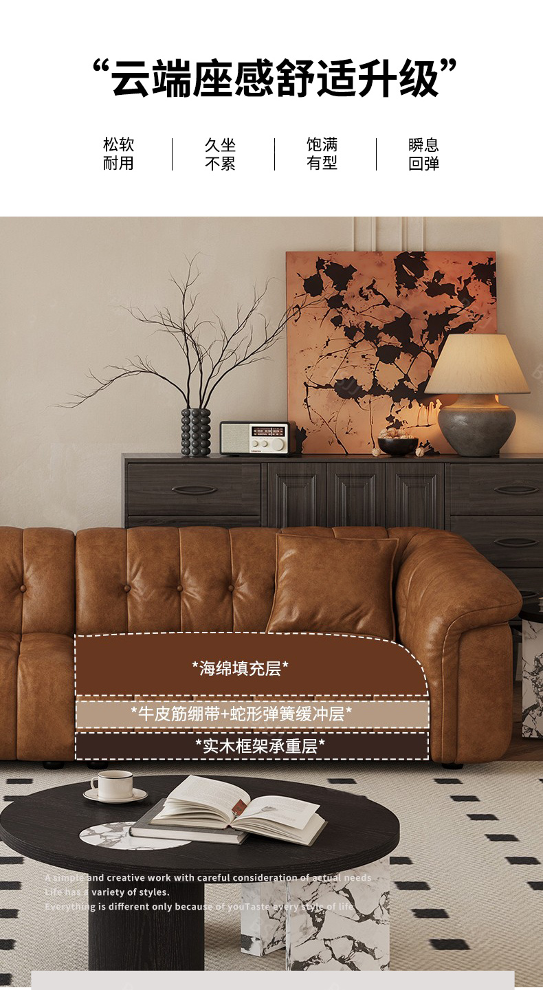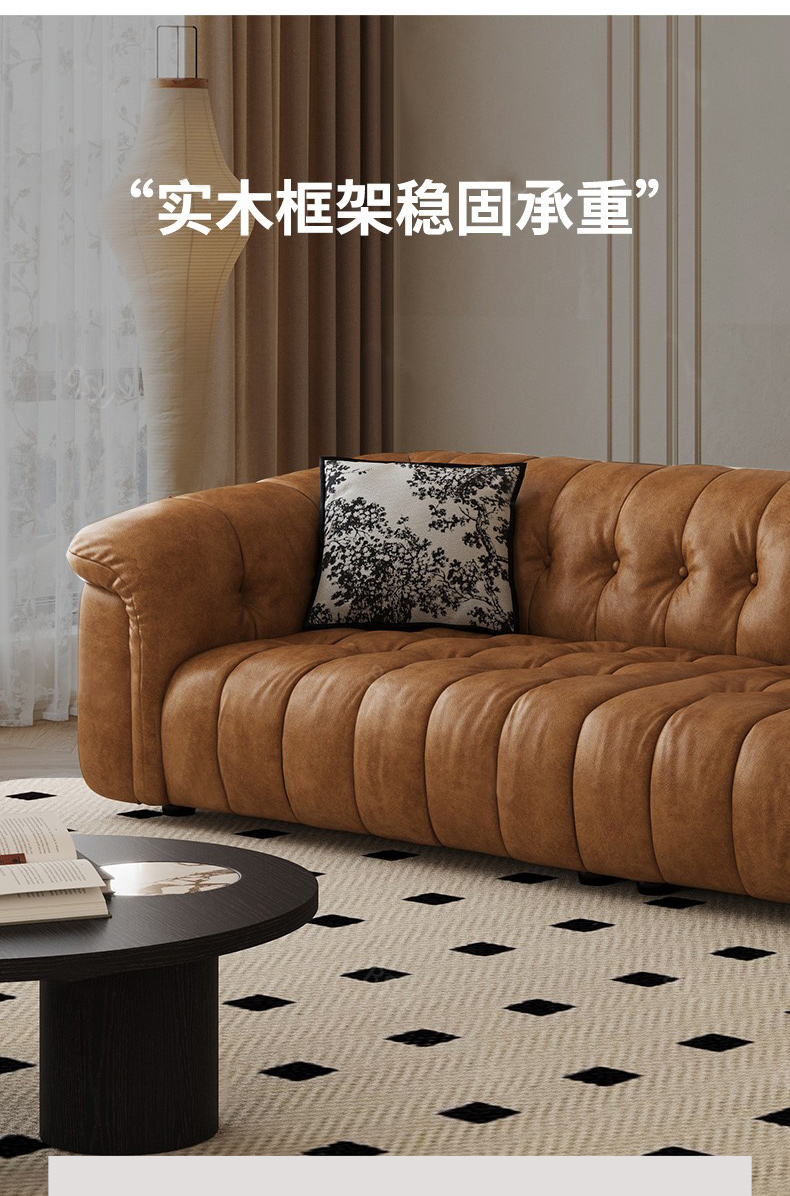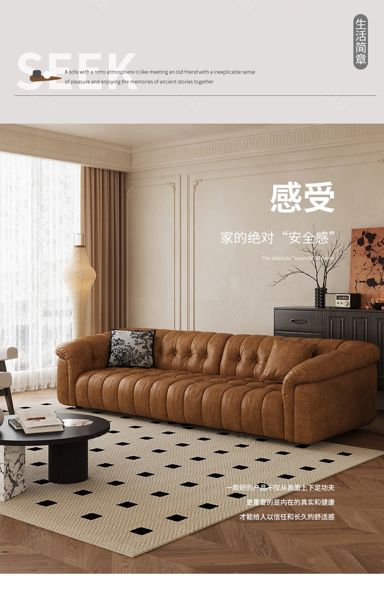 中古·尚 网红 中古风 接触面头层牛皮+框架落叶松木+多层实木夹板+实木脚 2.85米四人位 分体 沙发¥6776