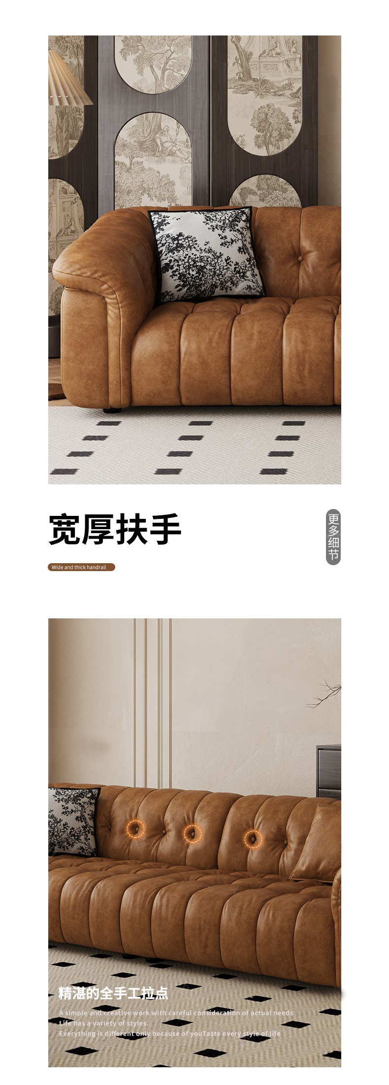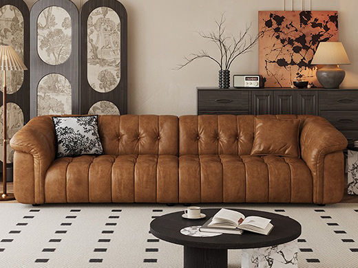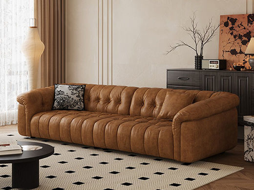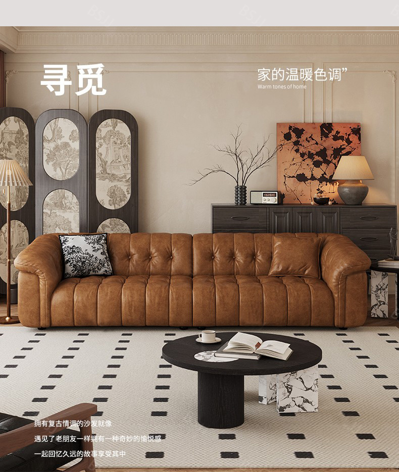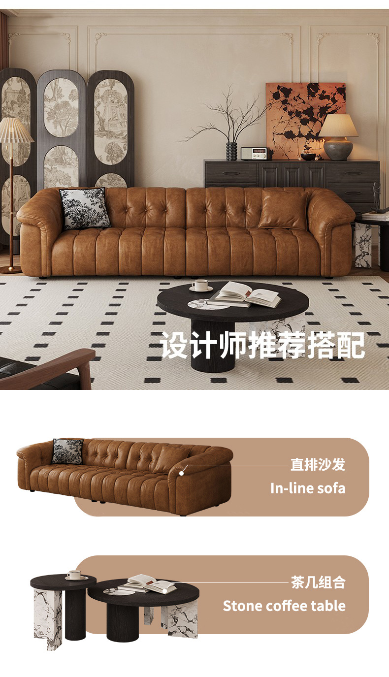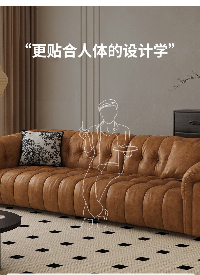 中古·尚 网红 中古风 接触面头层牛皮+框架落叶松木+多层实木夹板+实木脚 2.85米四人位 分体 沙发¥6776