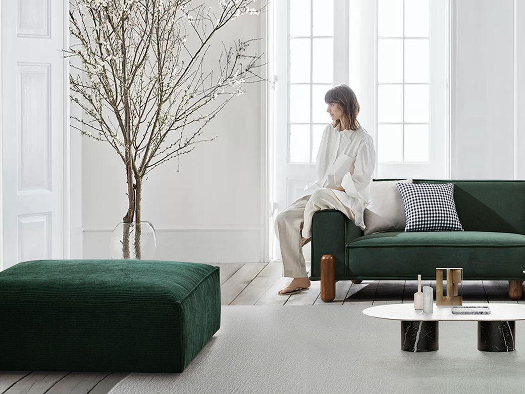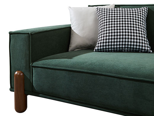 B系优选 极简 高密灯芯绒面料+全实木落叶松框架+高强度镀金拉簧 绿色 双扶四人位2.8米沙发+脚踏