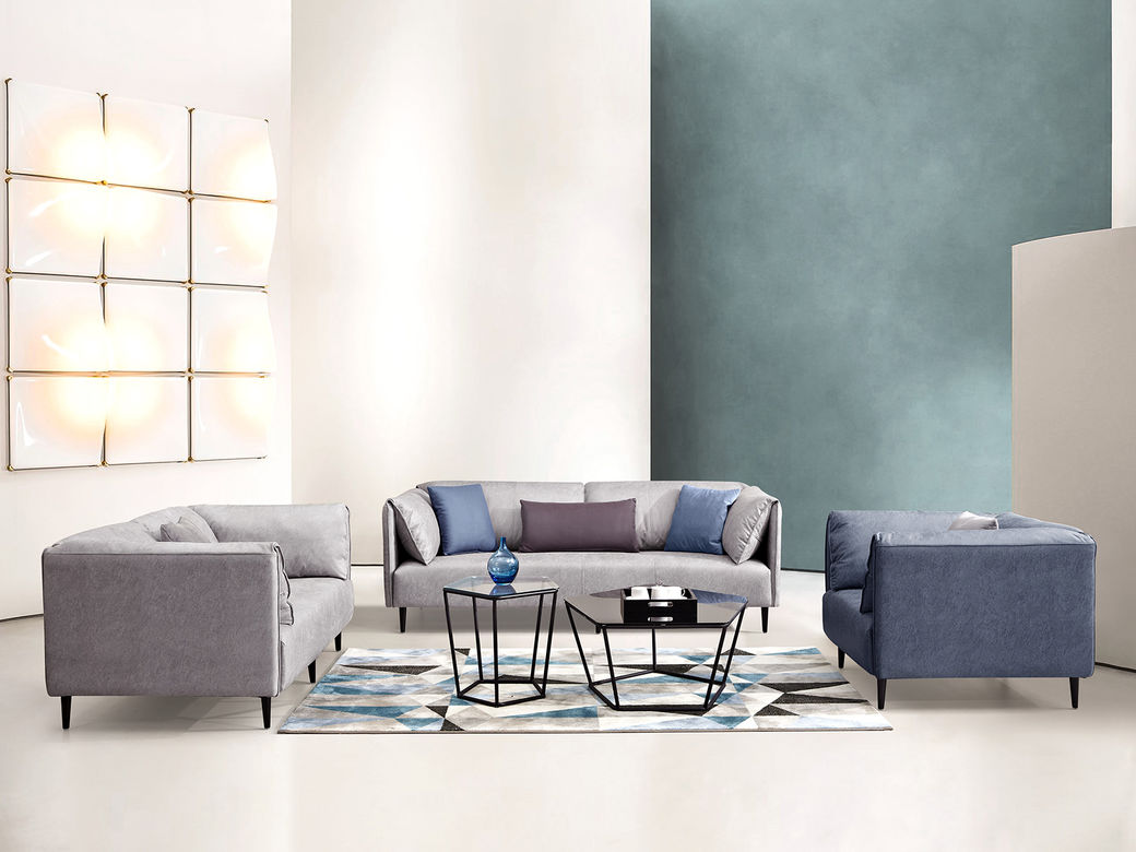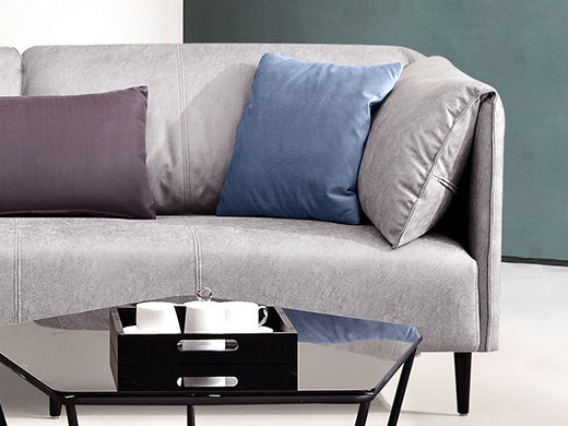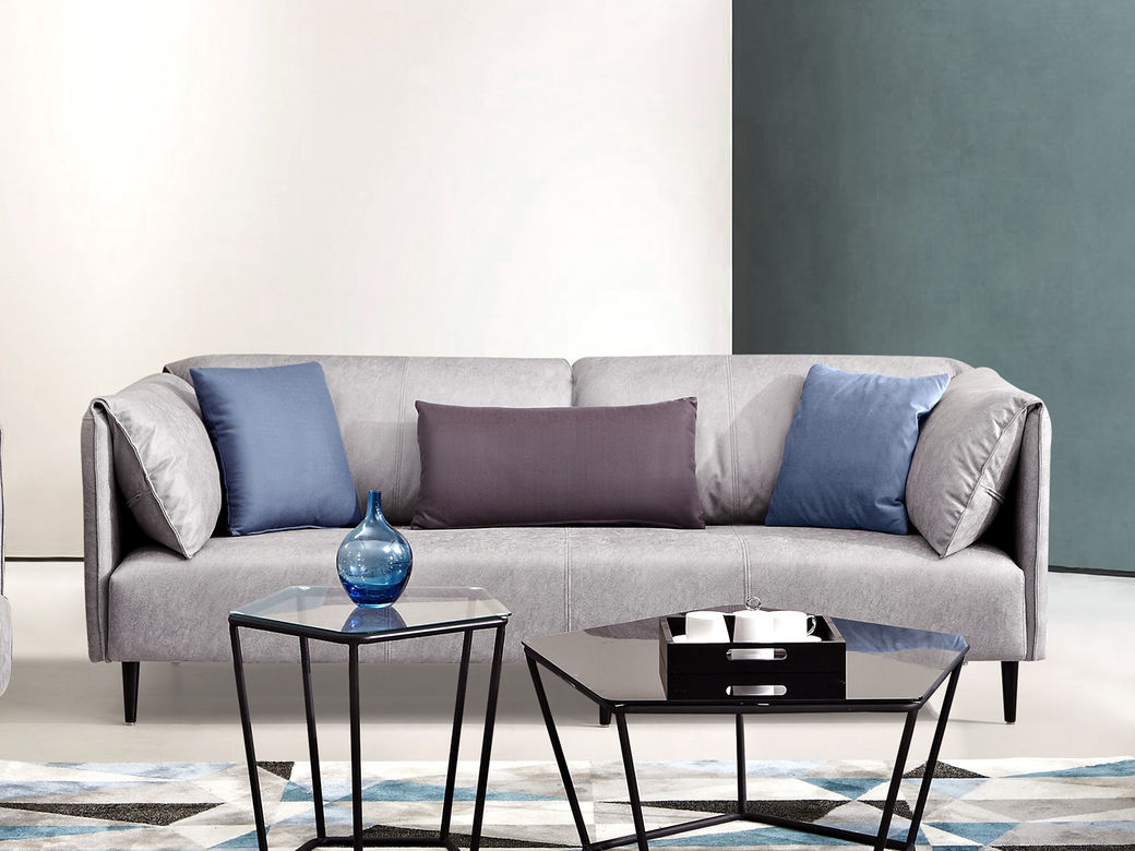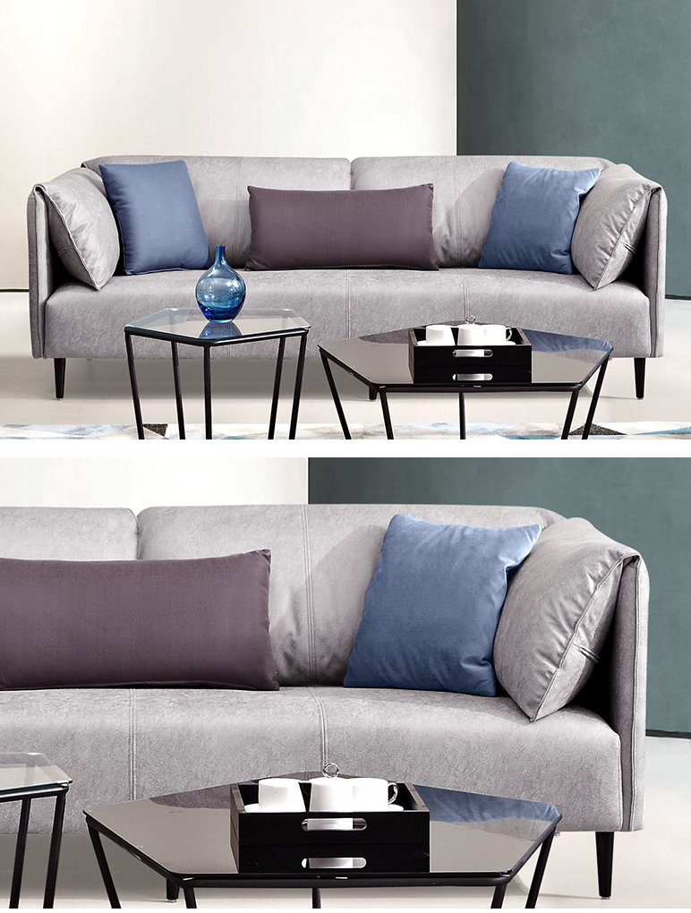 非凡工艺 现代简约 高档柔性科技布+羽绒靠包、扶手+5CM一体成型乳胶、全实木落叶松框架+高强度镀金拉簧 蓝灰色 三人位 2.1米沙发