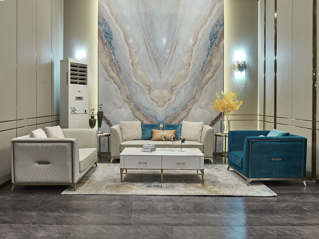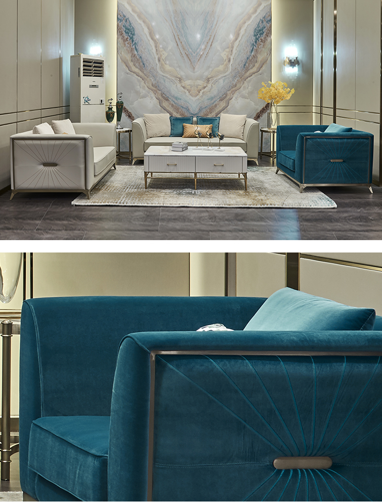 拉斐尔 轻奢 绒布+进口落叶松+多层实木板+高回弹海绵+电镀不锈钢五金 1+2+3 沙发¥52816