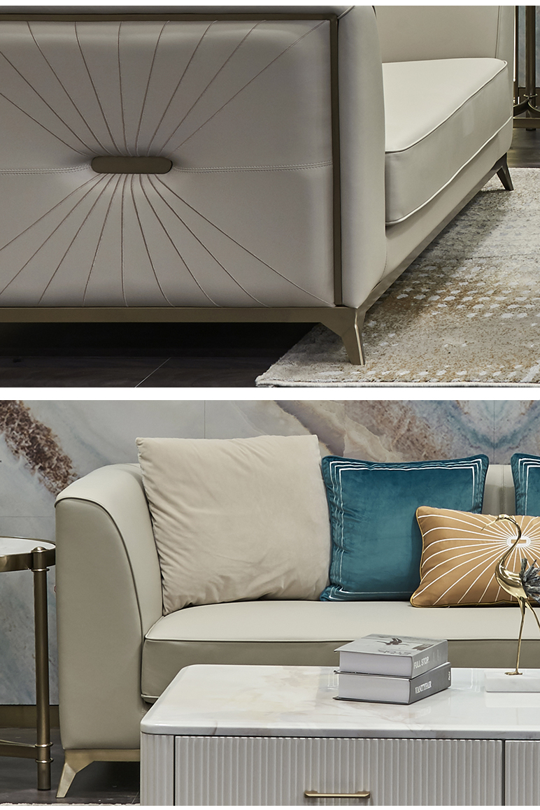 拉斐尔 轻奢 纳帕皮+仿真皮+(单位绒布)+进口落叶松+多层实木板+高回弹海绵+电镀不锈钢五金 1+1+2+4 沙发