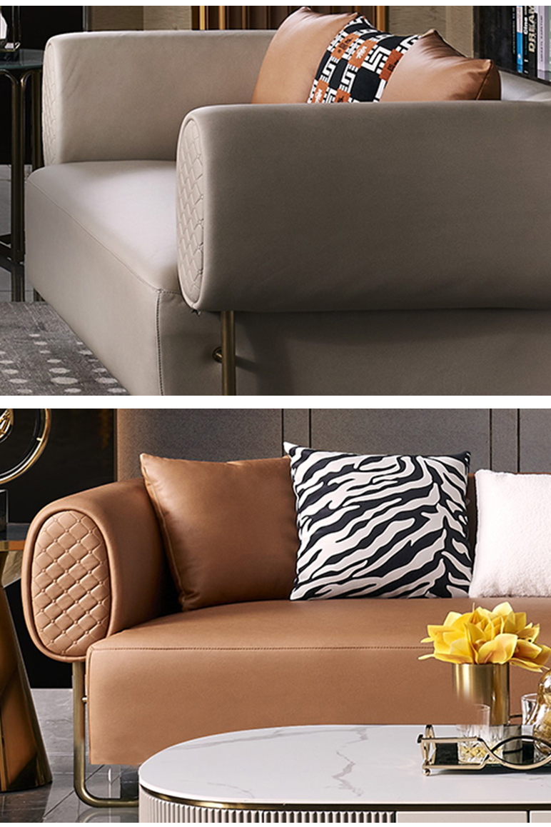 拉斐尔 轻奢 纳帕皮+仿真皮+(单位绒布)+进口落叶松+多层实木板+高回弹海绵+电镀不锈钢五金 1+2+3 沙发