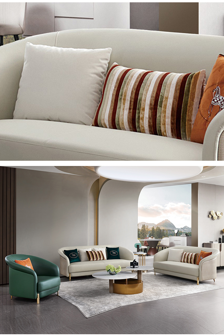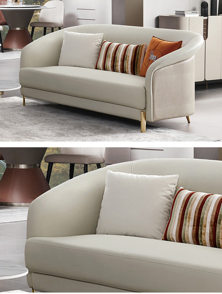 拉斐尔 轻奢 纳帕皮+仿真皮+(单位绒布)+进口落叶松+多层实木板+高回弹海绵+电镀不锈钢五金 1+1+2+4 沙发