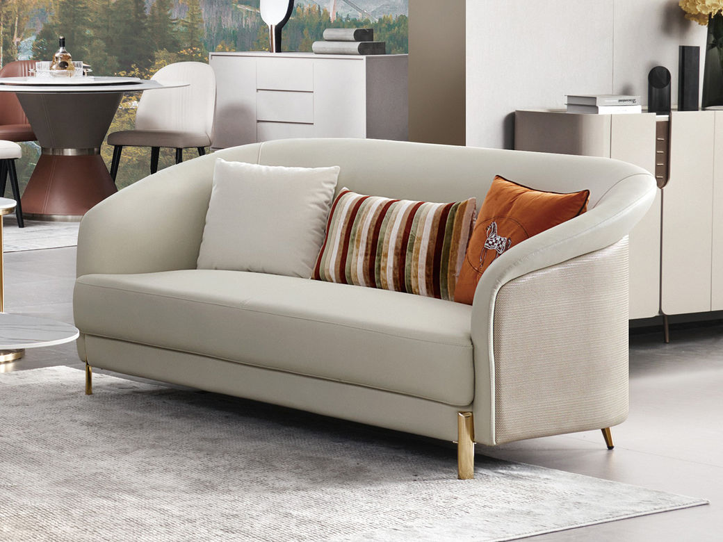 拉斐尔 轻奢 纳帕真皮+仿真皮+进口落叶松+多层实木板+高回弹海绵+电镀不锈钢五金 二位 1.7米沙发