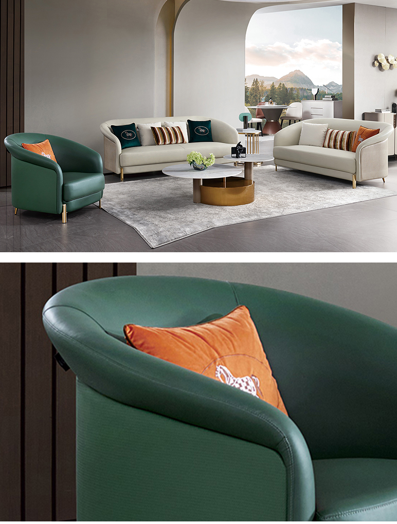 拉斐尔 轻奢 纳帕皮+仿真皮+(单位绒布)+进口落叶松+多层实木板+高回弹海绵+电镀不锈钢五金 1+1+2+4 沙发