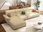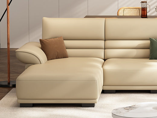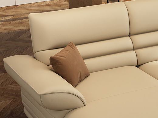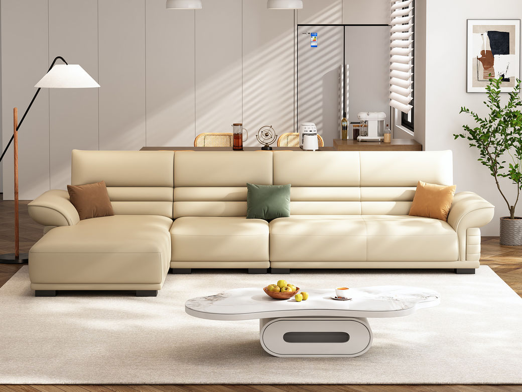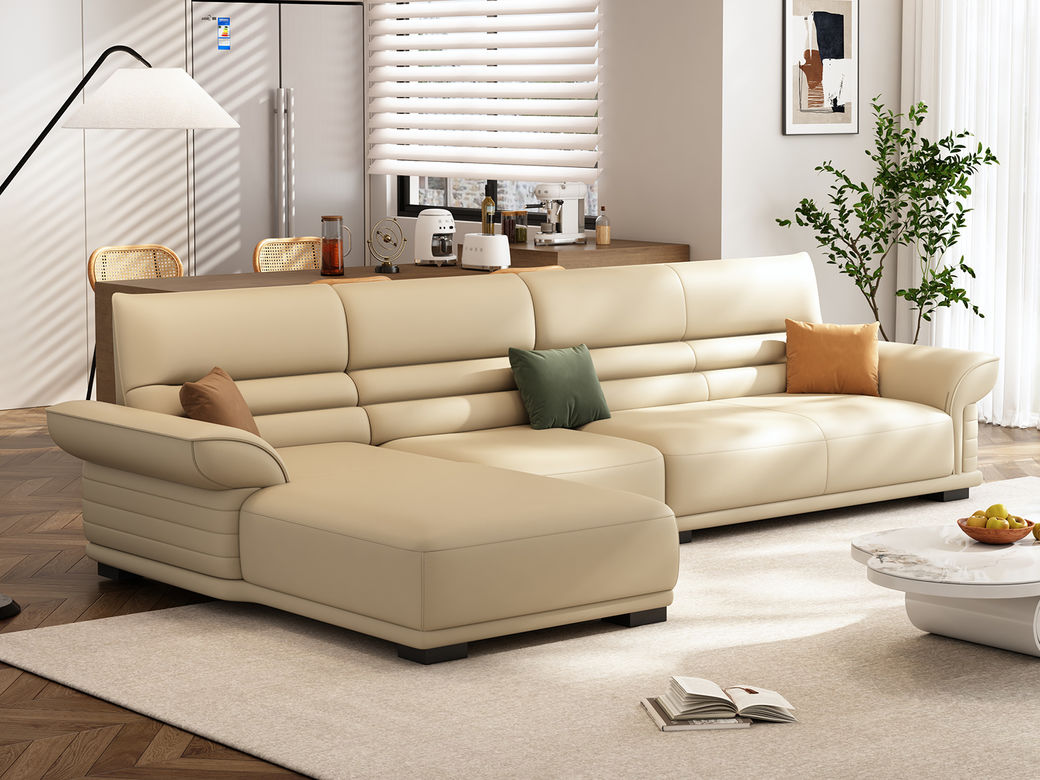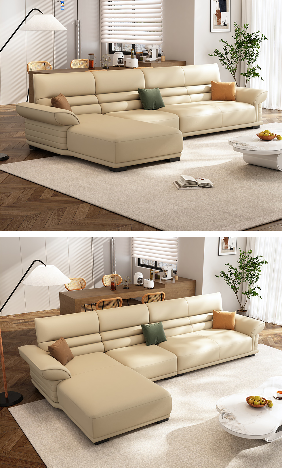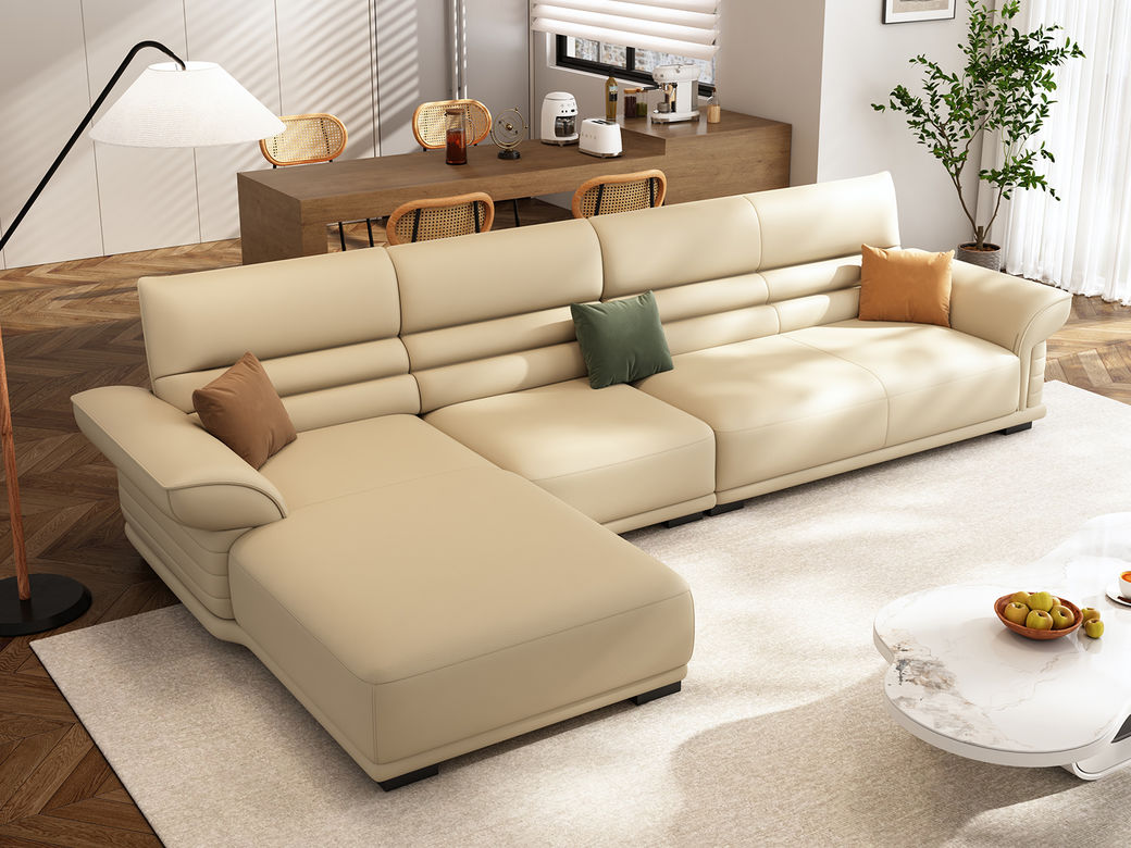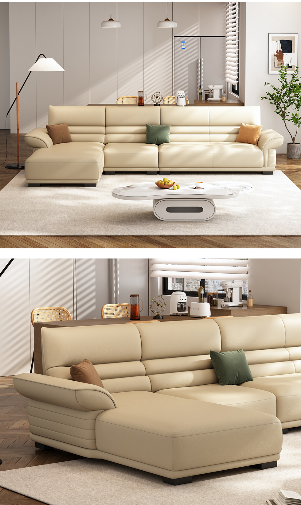 梵纳意简 极简 接触面头层牛皮+仿皮+多层实木板+实木内架+高回弹海绵+实木5分脚米黄色 1+右贵妃+3 3.45米沙发