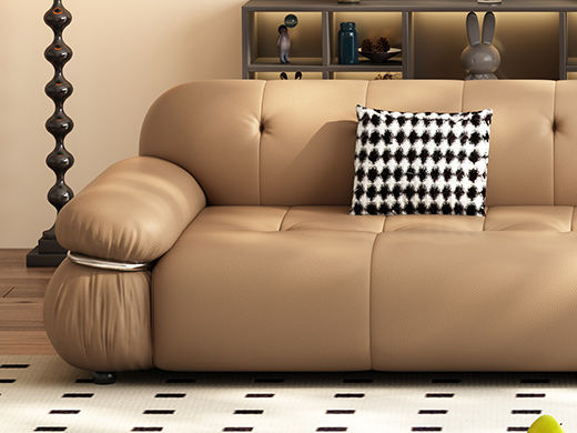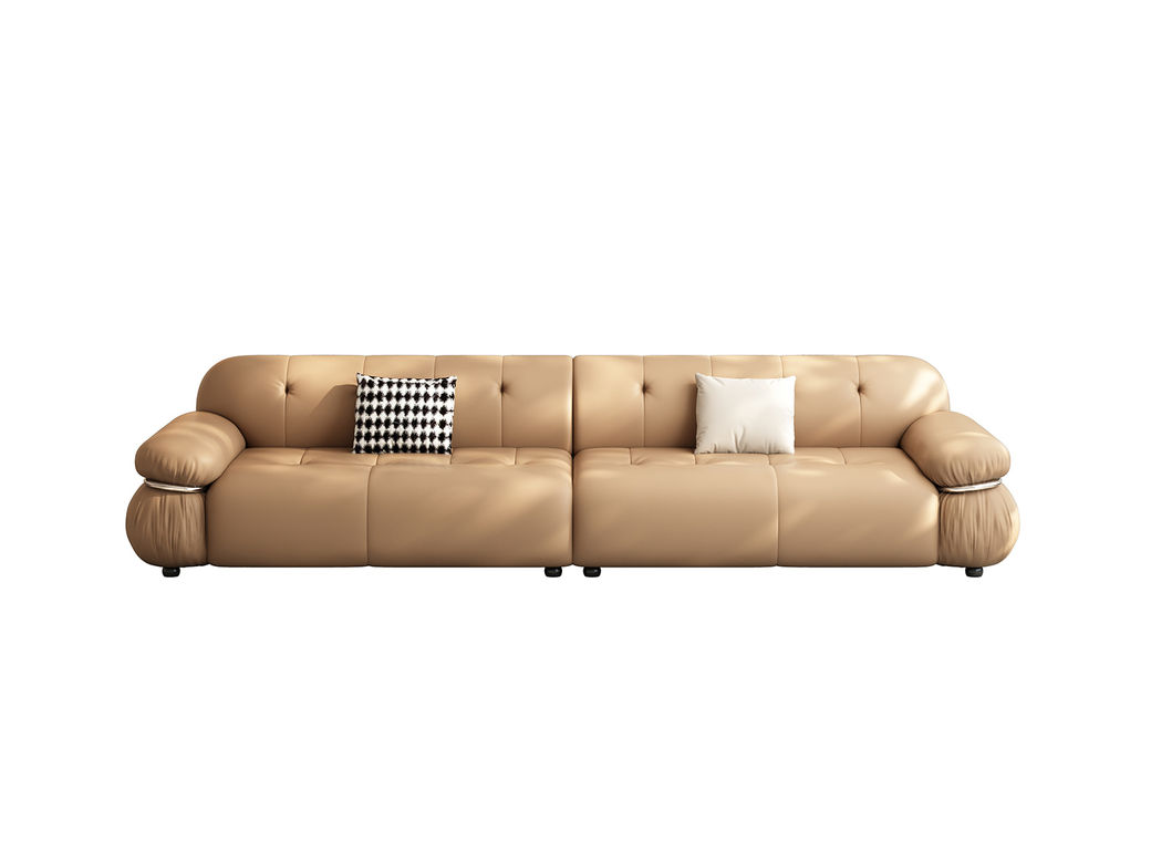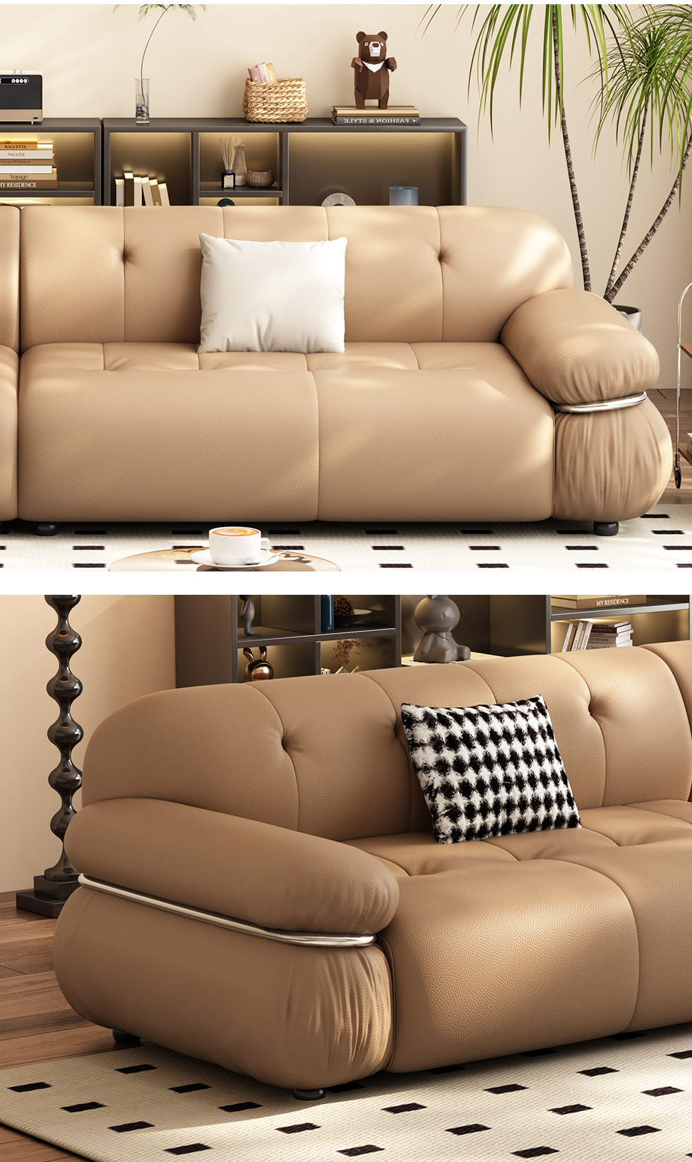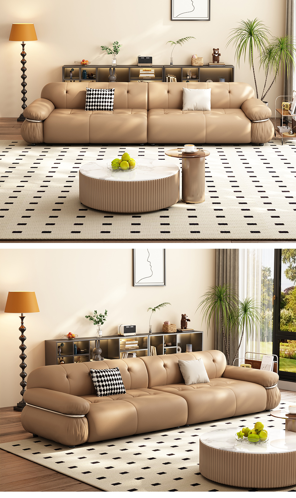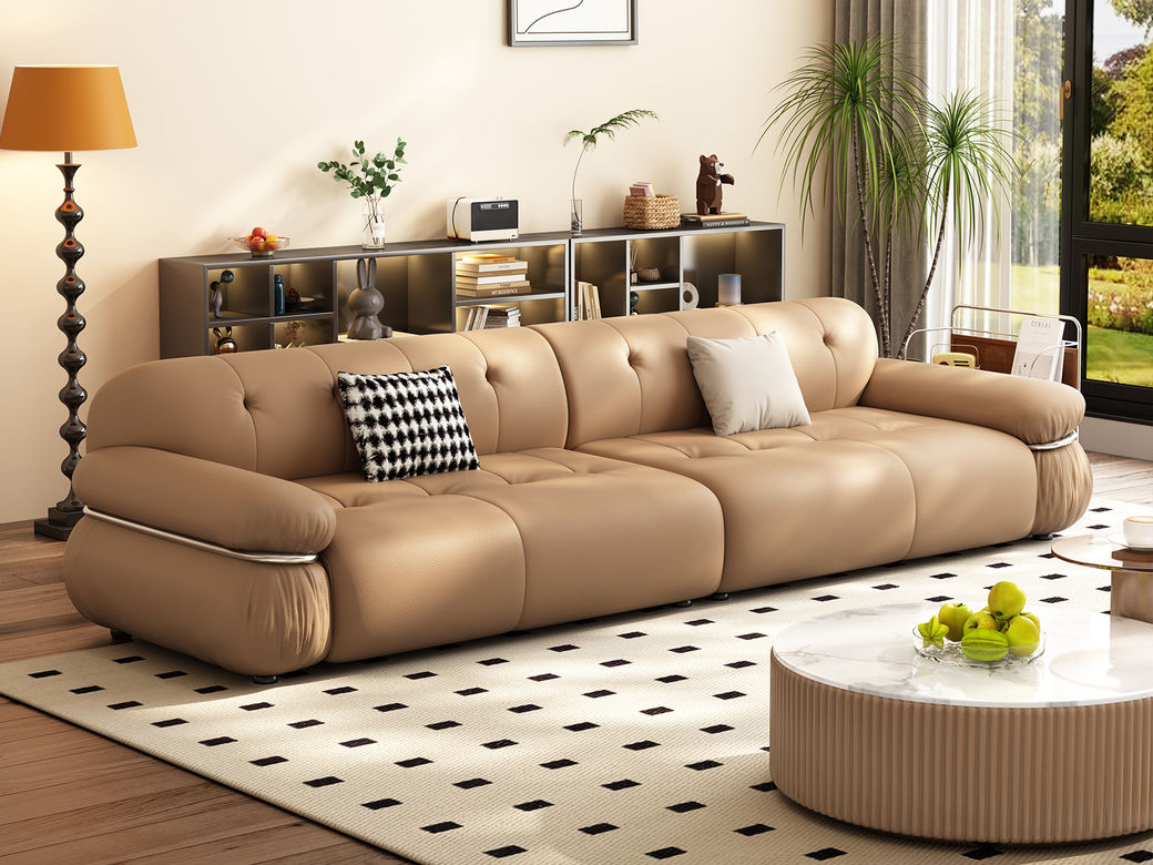 B系优选 极简 生态真皮+仿皮+多层实木板+实木内架+高回弹海绵+实木5分脚 奶咖色 直排大四位 3.66米沙发¥8155