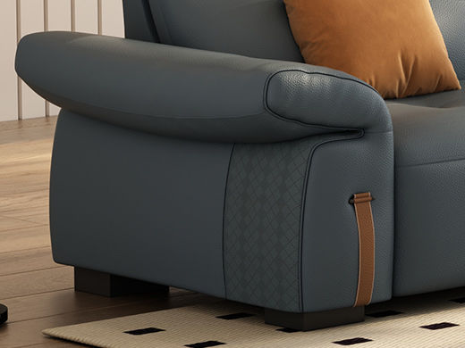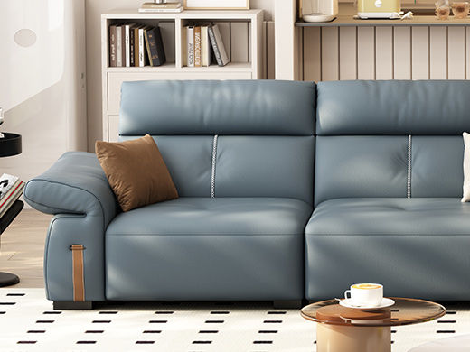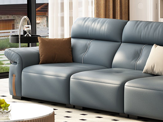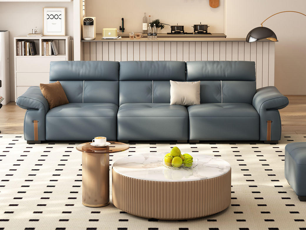 B系优选 极简 接触面头层牛皮+仿皮+多层实木板+实木内架+高回弹海绵+实木5分脚 蓝灰色 直排四位 2.85米沙发