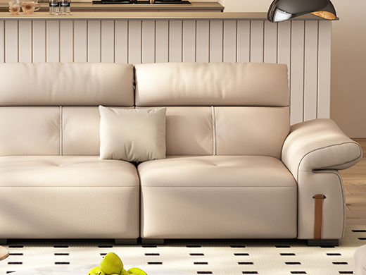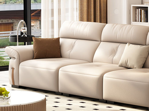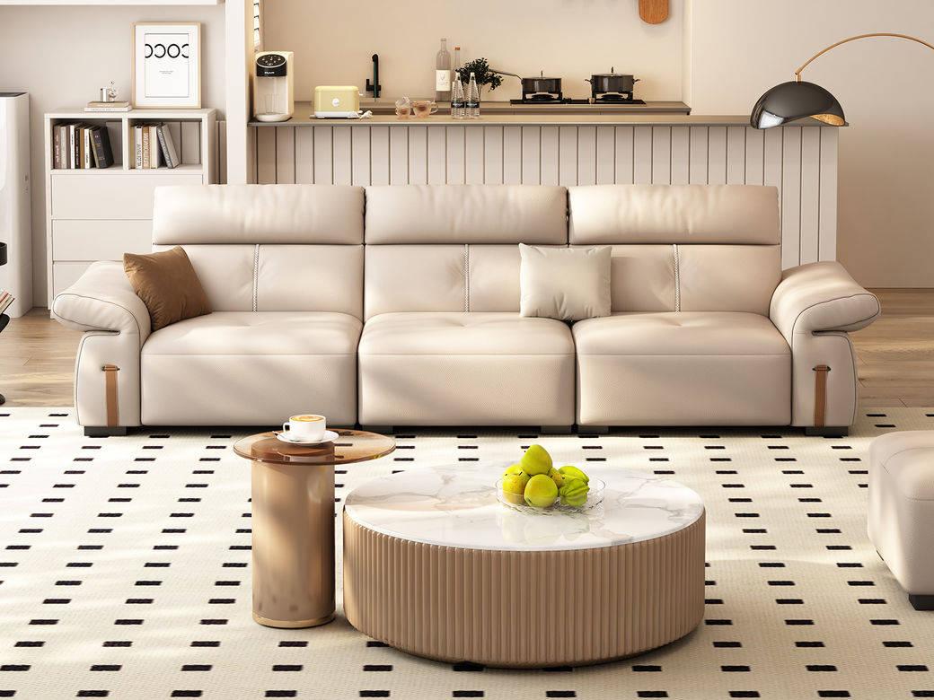 B系优选 极简 接触面头层牛皮+仿皮+多层实木板+实木内架+高回弹海绵+实木5分脚 米色 四位 2.8米沙发