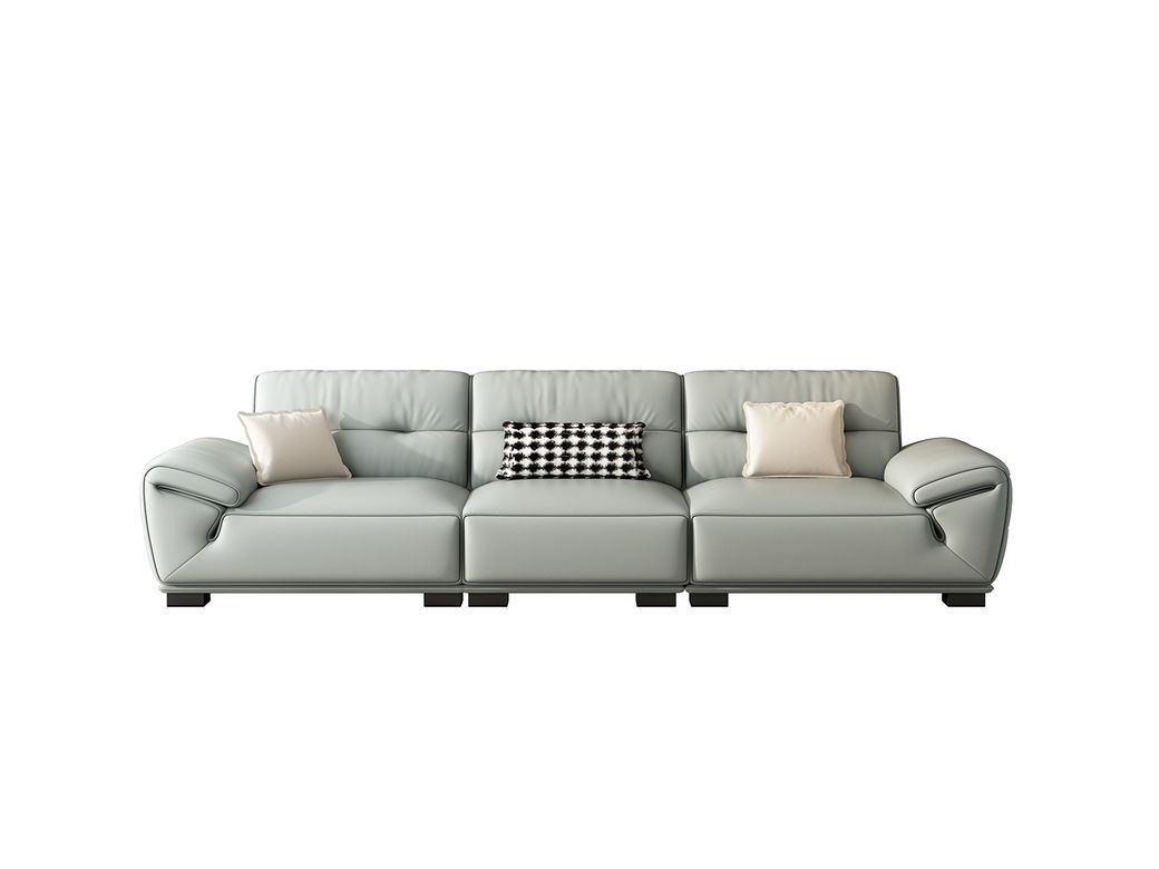 B系优选 极简 接触面头层牛皮+仿皮+多层实木板+实木内架+高回弹海绵+实木5分脚 小清新 直排四位 3米沙发
