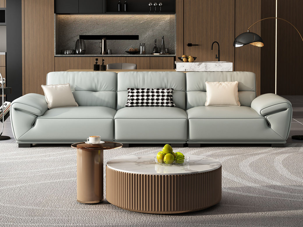 B系优选 极简 接触面头层黄牛皮+仿真皮+E1级多层实木板+进口落叶松 2.97米四人位 沙发¥8155