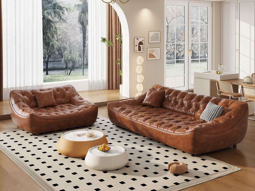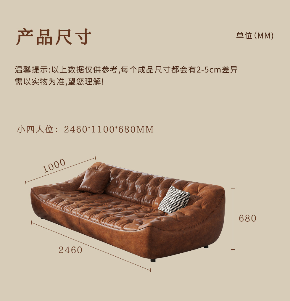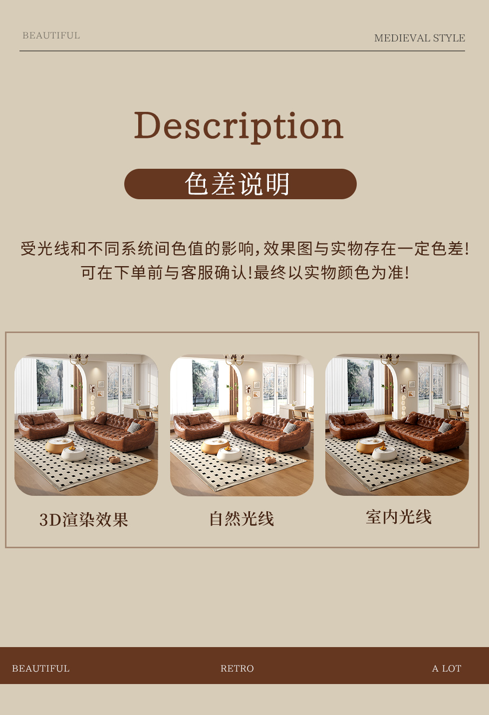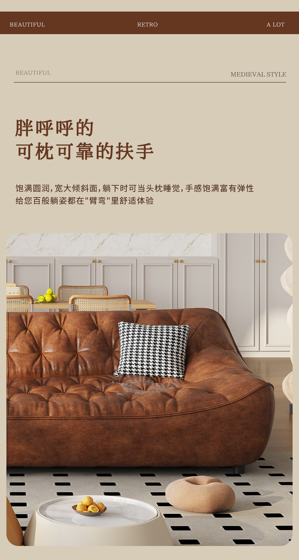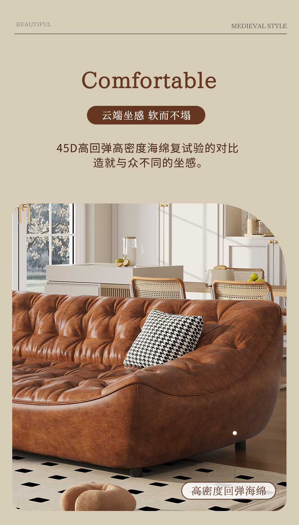 中古·尚 网红 中古风 接触面头层牛皮+框架落叶松木+多层实木夹板+实木脚 2.85米四人位 分体 沙发