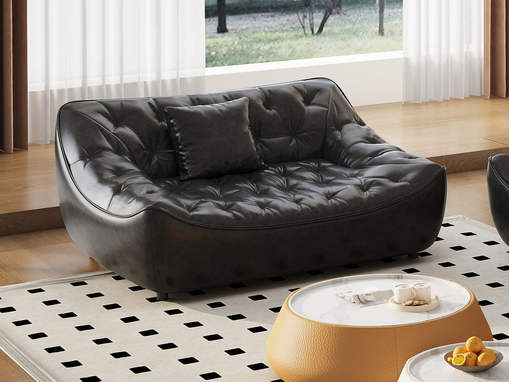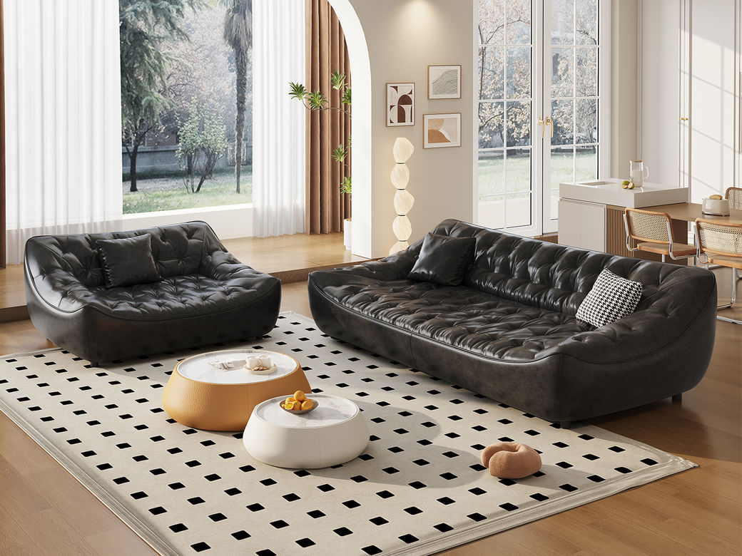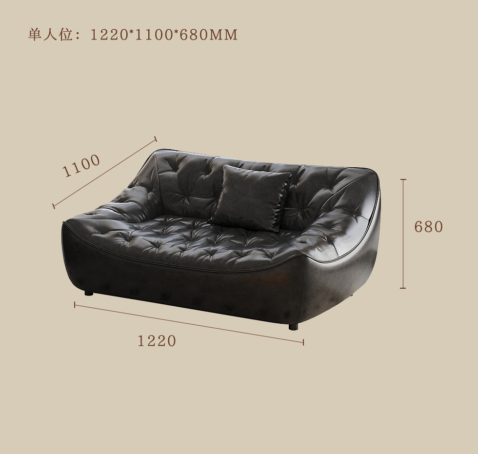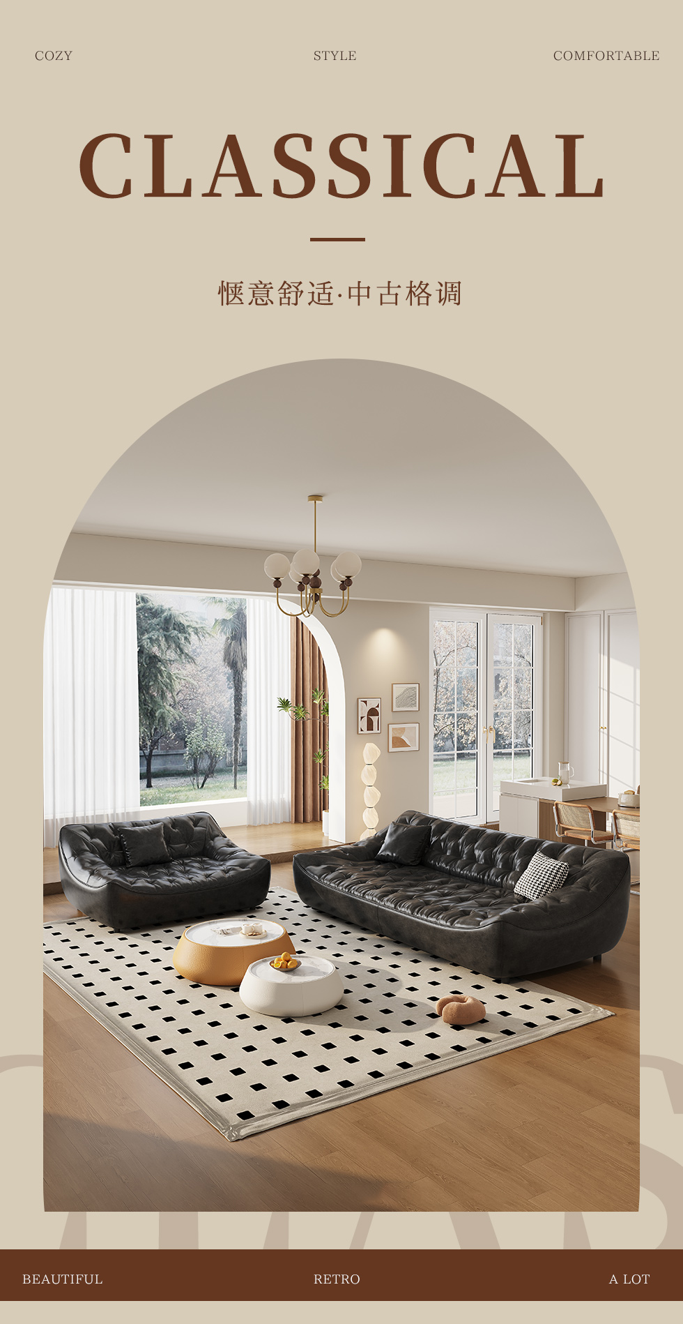 中古·尚 中古风 接触面头层牛皮+仿皮+多层实木板 亮黑色 单位 1.22米沙发