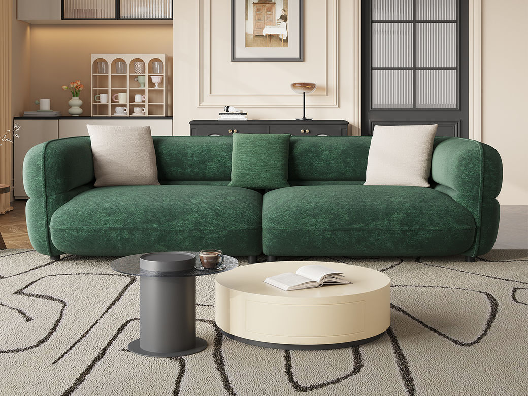 A系优选 极简 棉绒布+多层实木板+实木内架 森林绿 大四位 3米沙发