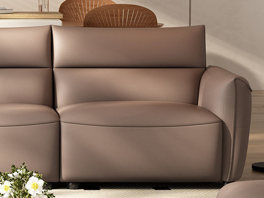 B系优选 极简 接触面头层牛皮+仿皮+多层实木板+实木内架+高回弹海绵+实木5分脚 咖色 直排四位 3米沙发¥8155