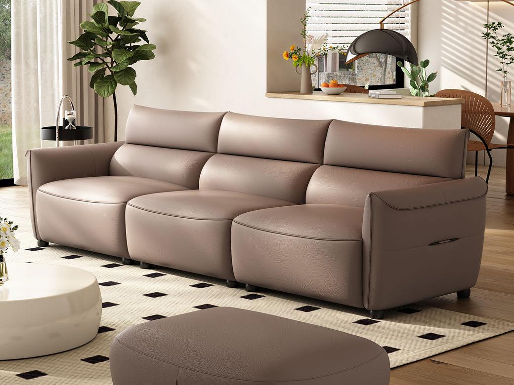 B系优选 极简 接触面头层黄牛皮+仿真皮+E1级多层实木板+进口落叶松 四人位 2.8米沙发¥6058