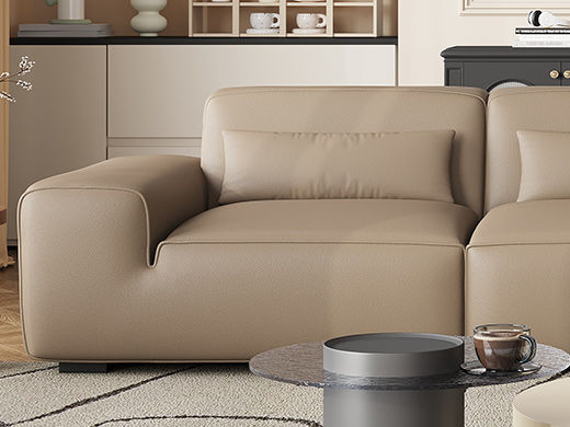 B系优选 极简,极简 接触面头层牛皮+仿皮+多层实木板+实木内架+高回弹海绵+实木5分脚 米黄色 大四位 3.44米沙发1件商品搭配总价: