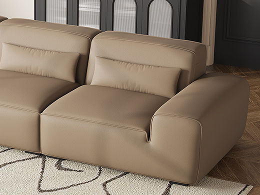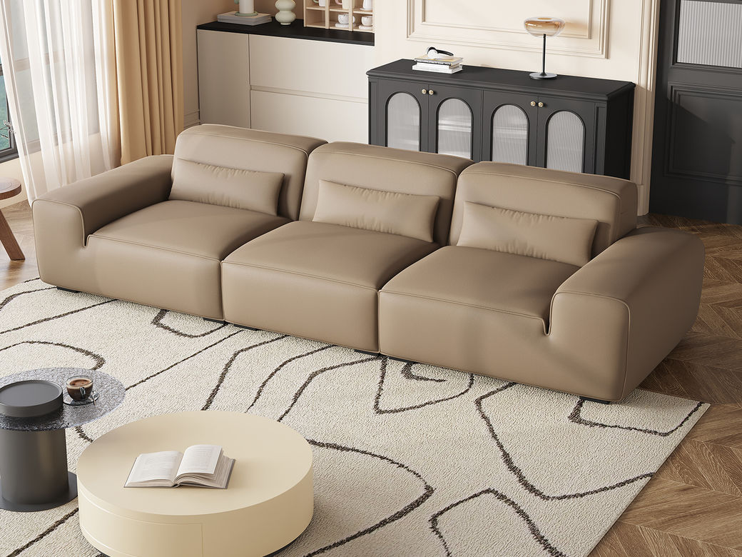 B系优选 极简 生态真皮+仿皮+多层实木板+实木内架+高回弹海绵+实木5分脚 奶咖色 直排大四位 3.66米沙发