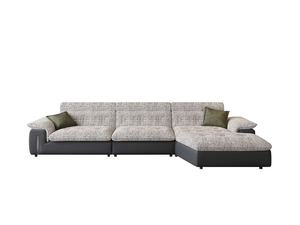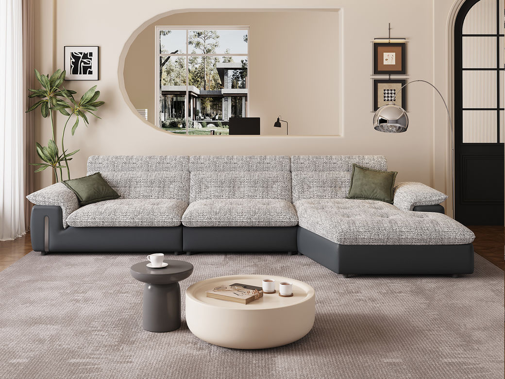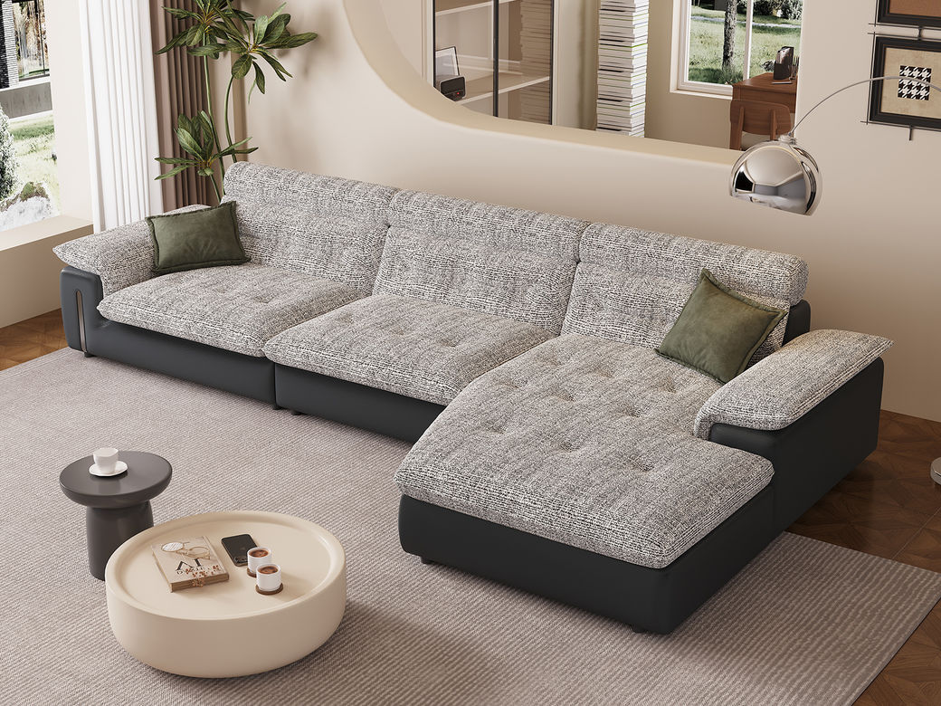 B系优选 极简 高档柔性科技布+全实木落叶松框架+高强度镀金拉簧 灰色 四人位+左贵妃 3.7米沙发¥8155