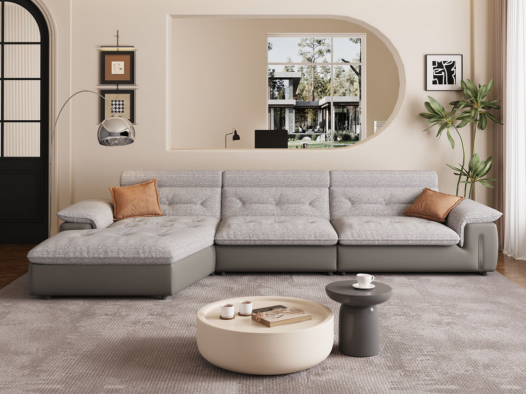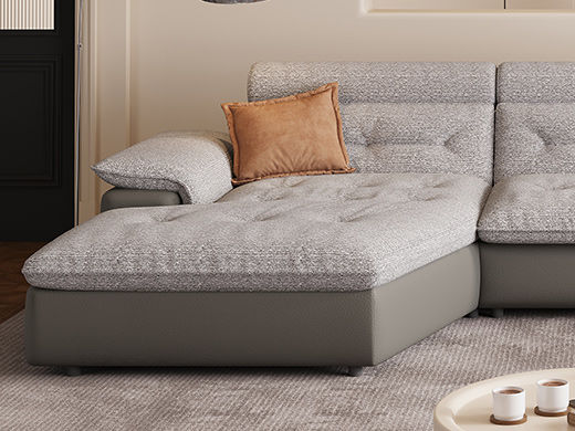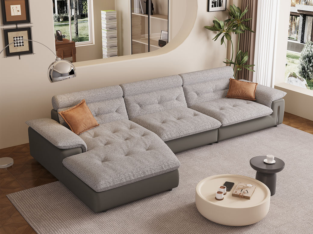 B系优选 极简 高档柔性科技布+全实木落叶松框架+高强度镀金拉簧 灰色 四人位+左贵妃 3.7米沙发¥8155