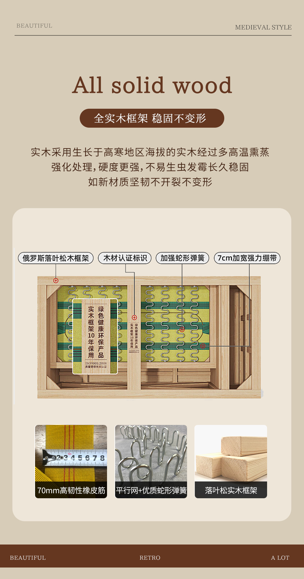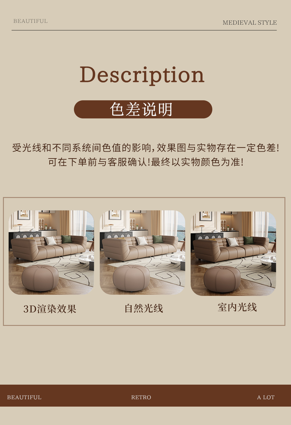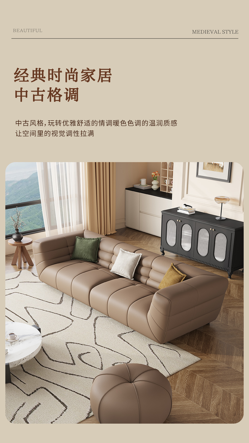 中古·尚 网红 中古风 接触面头层牛皮+框架落叶松木+多层实木夹板+实木脚 2.85米四人位 分体 沙发