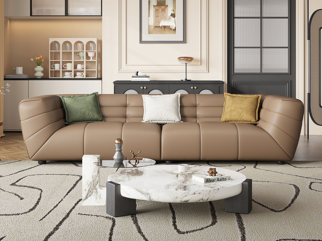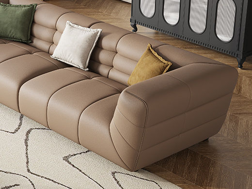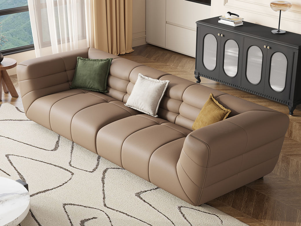中古.尚 极简 接触面头层牛皮+仿皮+多层实木板+实木内架+高回弹海绵+实木5分脚 卡其色 大四位 3.24米沙发¥6720