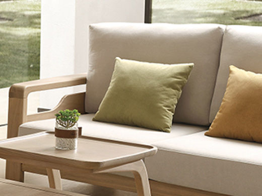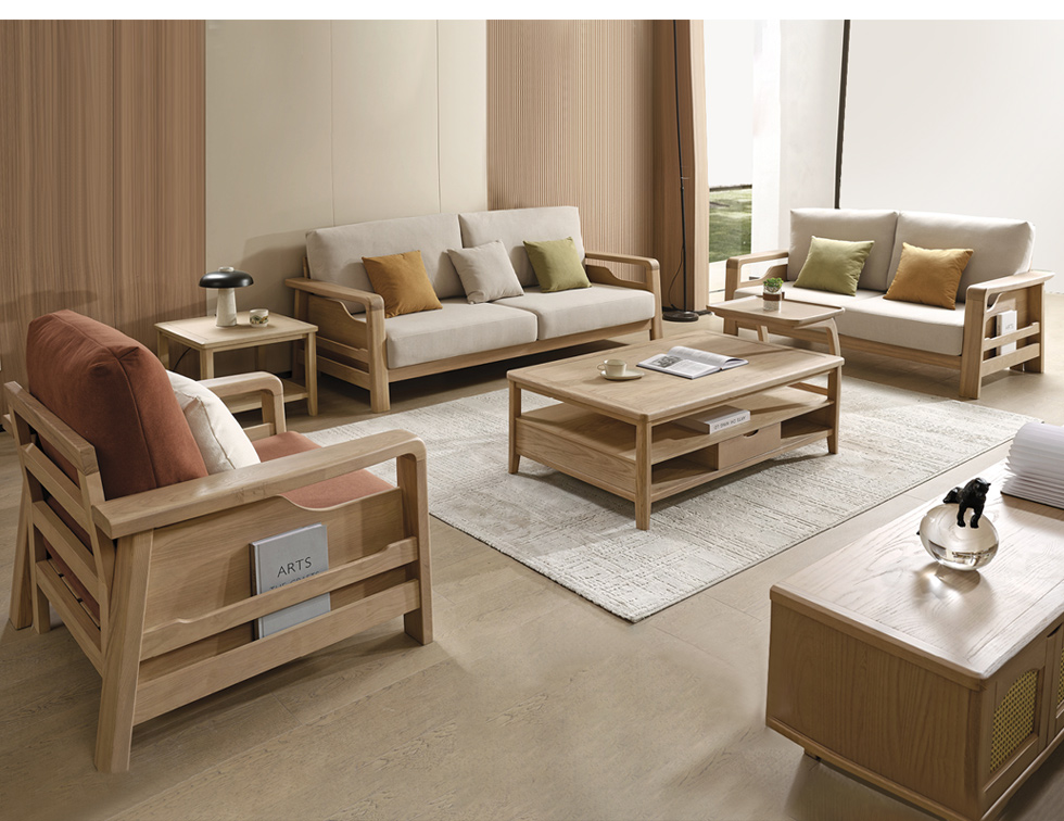 木作中古 中古风 橡胶木+科技布 四人位+脚踏 樱桃色 3.02米沙发¥13686
