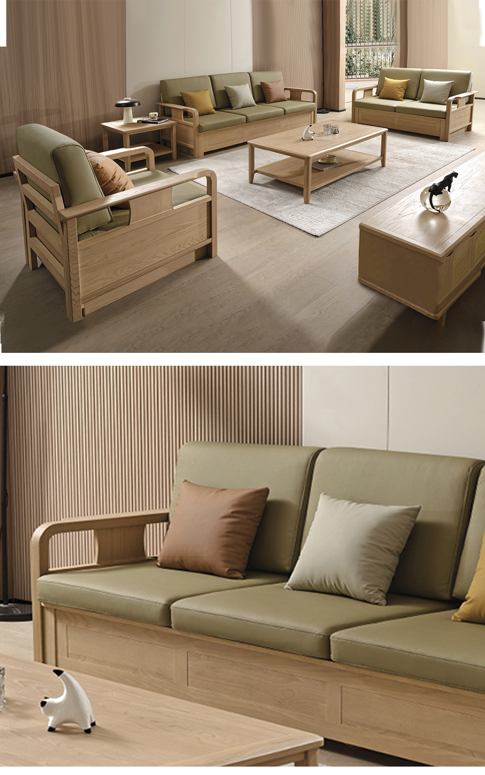 木作中古 中古风 橡胶木+科技布 四人位+脚踏 樱桃色 3.02米沙发¥13221