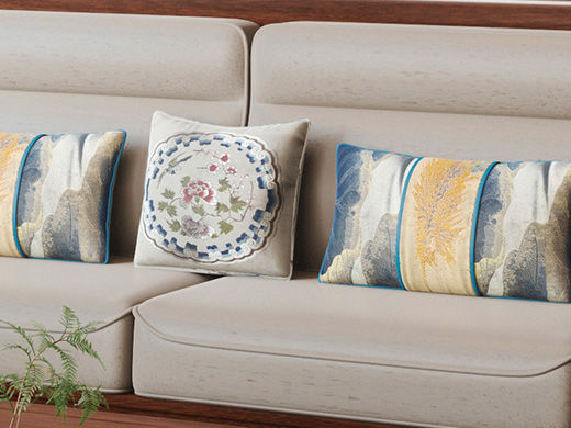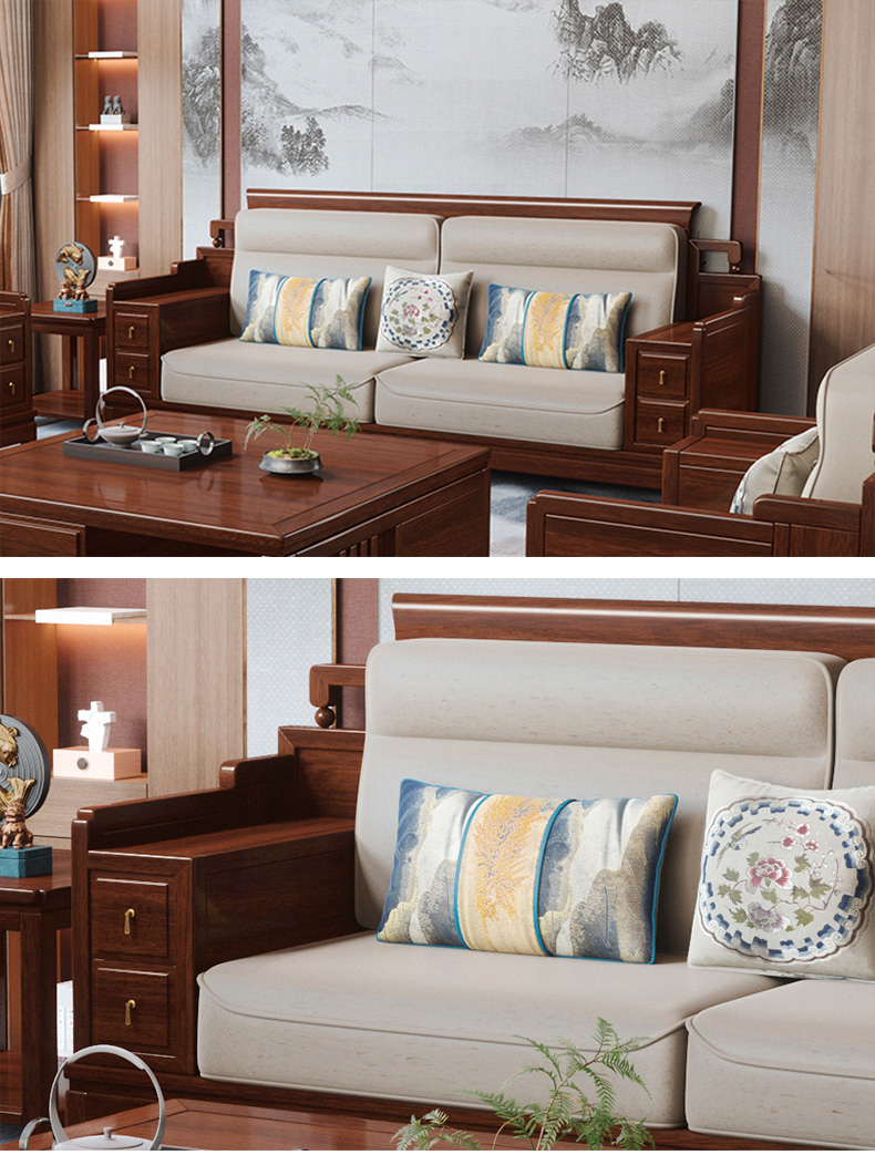 宝瑞·檀风 新中式 印尼金花梨木框架+多层实木板贴皮+布艺 紫檀色 2+2+脚踏 3.34米沙发¥23286
