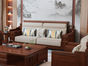 宝瑞·檀风 新中式 印尼金花梨木框架+多层实木板贴皮+布艺 紫檀色 三位 2.34米沙发