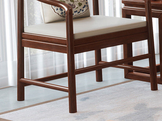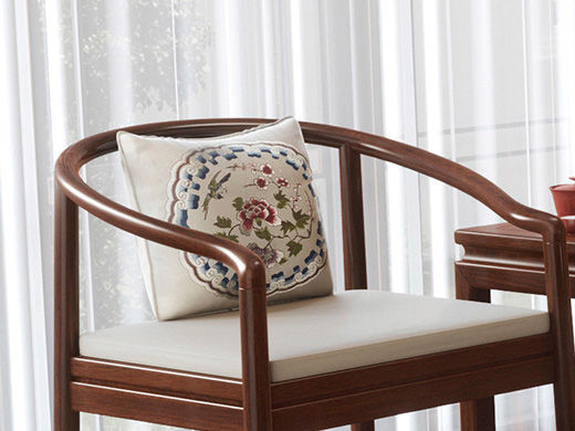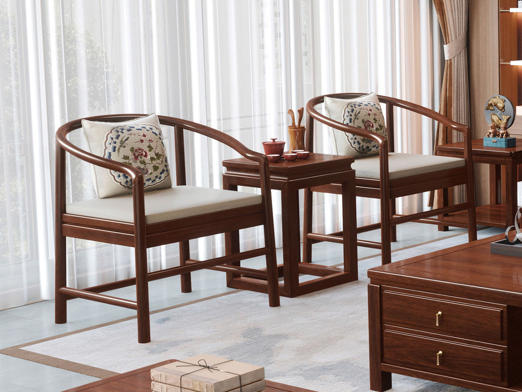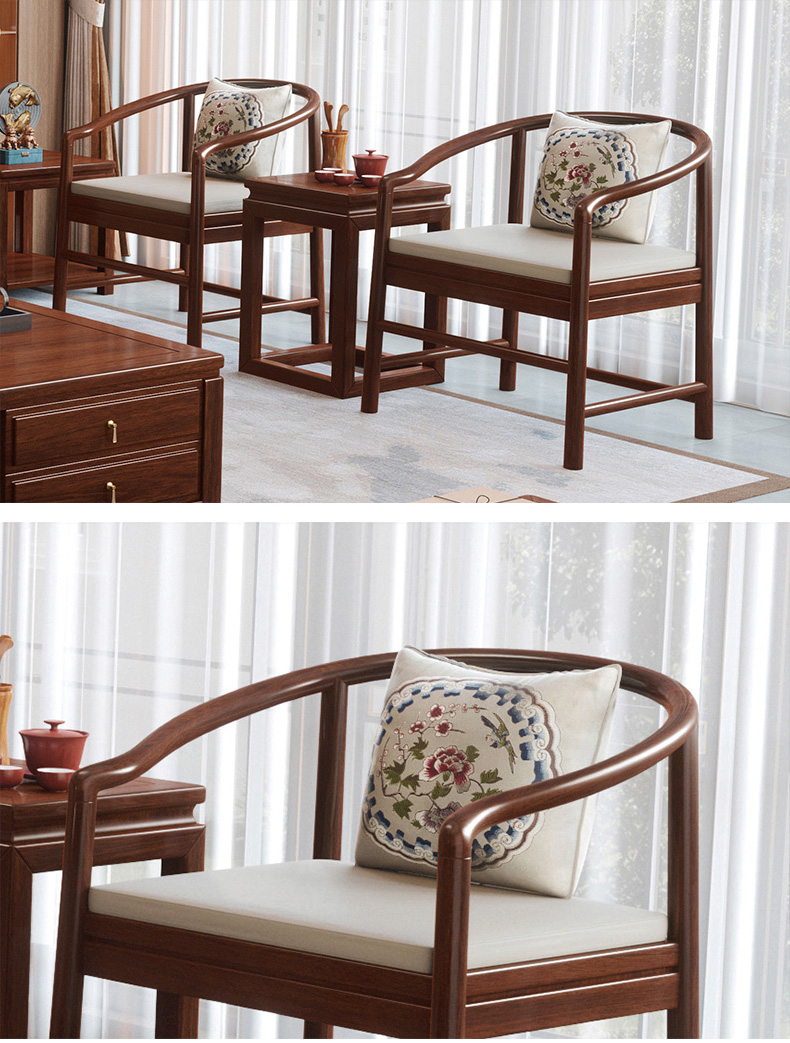 宝瑞·檀风 新中式 印尼金花梨木框架+多层实木板贴皮+布艺 紫檀色 围椅1张